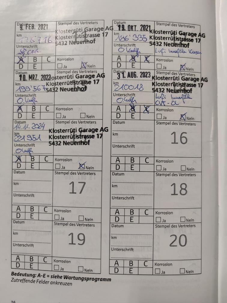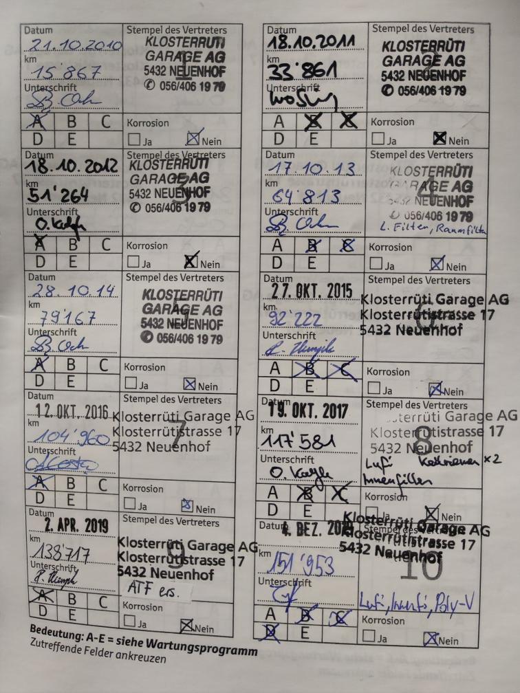 Im Kundenauftrag zu Verkaufen: Das Fahrzeug hatte einen Auffahrunfall und wurde von der Versicherung als Totalschaden eingestuft. Er ist fahrbar, jedoch streift das Rad vorne links am Radkasten. 1. Inv.: 01.11.2009 Kilometerstand: 229'703Km Letzter Service: 14.11.2024 / 221'951Km Letzte MFK: 28.03.2023 B04, Automatische-Klimaanlage, Tempomat, JBL-Soundsystem, FM-Radio, CD-Laufwerk, Sitzheizung vorne, alle vier Fensterheber elektrisch, Serviceheft vorhanden Unsere Fahrzeuge sind, wenn nichts anderes vermerkt ist, fahrbar und die Motoren/Getriebe funktionieren. Sehr gerne geben wir Ihnen persönlich per Email, telefonisch oder persönlich vor Ort genauere Auskünfte zum Zustand der Fahrzeuge. Während der laufenden Auktion können die Fahrzeuge, nach Voranmeldung, besichtigt und zur Probe gefahren werden! Jede Gewährleistung, soweit nach schweizerischem Obligationenrecht (OR) möglich, ist wegbedungen, insbesondere sind Wandelung und Minderung ausgeschlossen. Nach Abschluss der Auktion keine Preisverhandlungen, keine Diskussion betreffend Zustand, Geräusche oder weitere Punkte. Das Fahrzeug kann diverse Gebrauchsspuren aufweisen, wie Dellen, Kratzer, Beulen, Beschädigungen (aussen und innen). Es existiert keine explizite Zustandsbeschreibung.