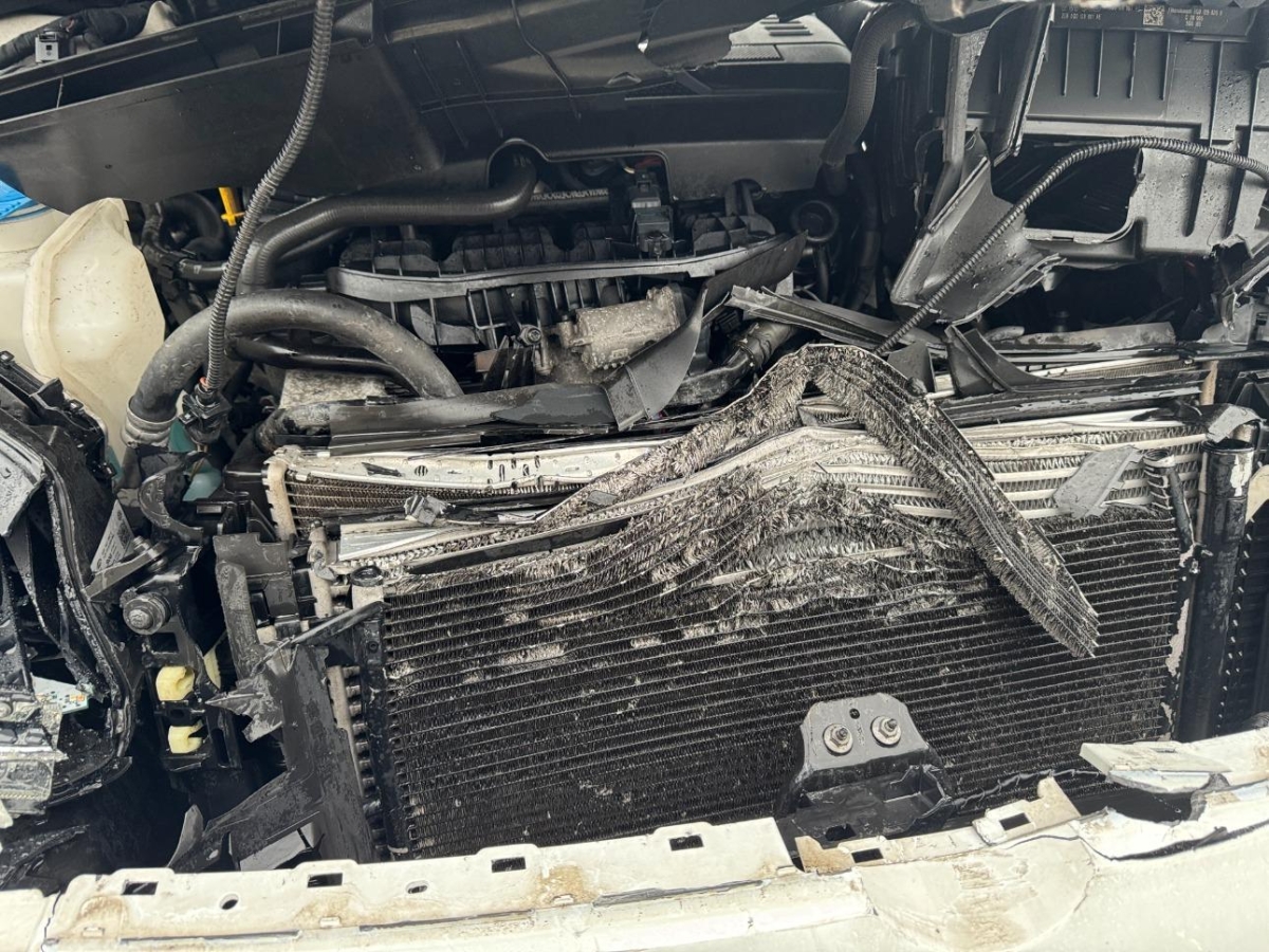 Airbag ausgelöst, Diverse Anbauteile, Front, Frontscheibe, Gurtstraffer ausgelöst, Klimakühler, Kotflügel links, Kotflügel rechts, Kühler, Kühlgitter, Ladeluftkühler, Motorhaube, Scheinwerfer links, Scheinwerfer rechts, Schlossträger, Stosstange vorne, Türe vorne links
