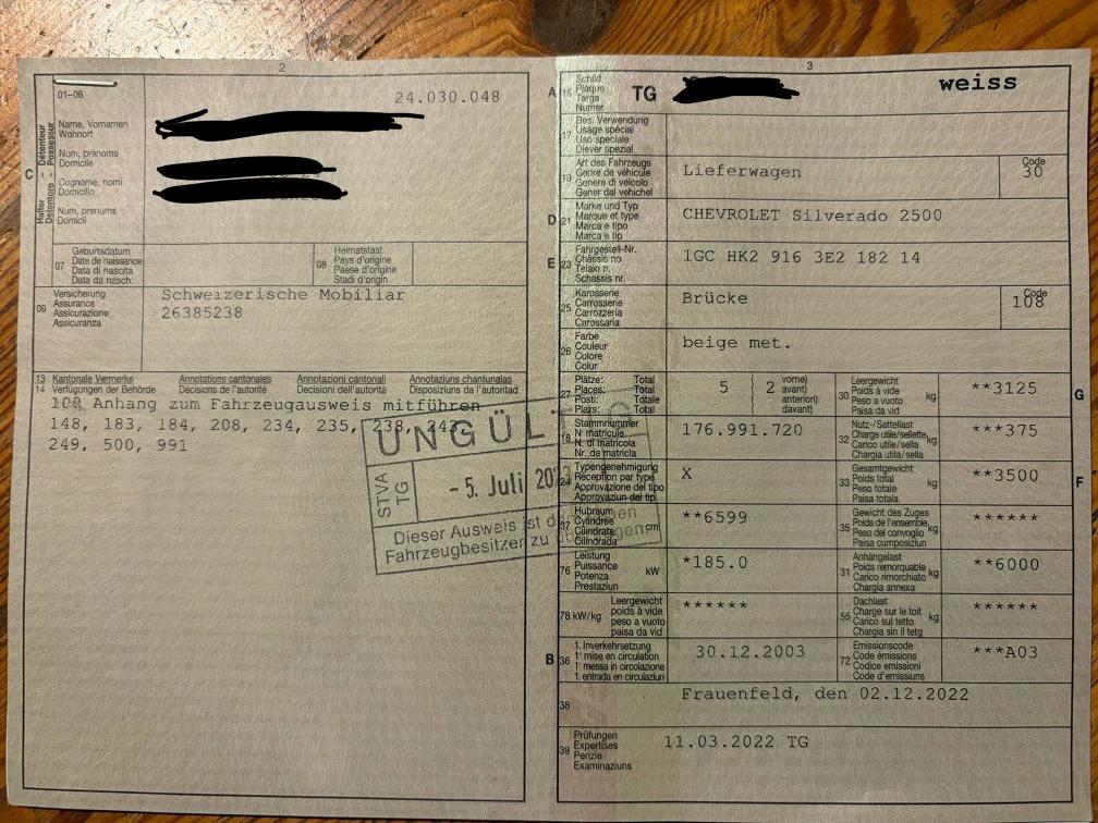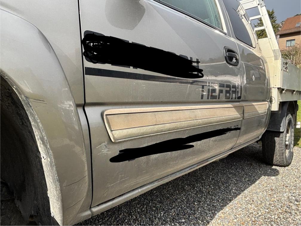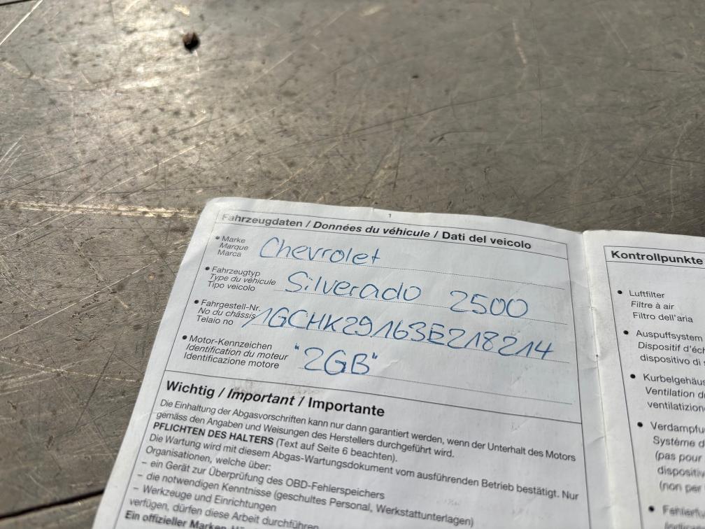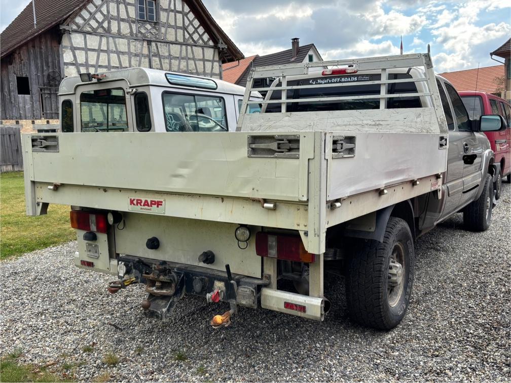 Cooler V8 Turbo Diesel Duramax mit Druckluftbremsanlage und 6 Tonnen Anhängelast! - Alubrücke Krapf - Druckluftbremse BEKA Anhängerbremssteuerung - 2. Schlüssel in Abklärung Fahrzeug stand 3 Jahre -> beide Batterien defekt. Der Wagen wurde zu uns gefahren und auf dem Weg ist eine Bremsleitung geplatzt. Somit NICHT fahrbar! Muss aufgeladen werden. Zusätzlich funktioniert der Rückwärtsgang nicht und aktuell kann der Wagen auch nicht gestartet werden (Anlasser oder Zündschloss). Der Pick-Up hat viele Kampfspuren (siehe Bilder). Ist in ungereinigtem Zustand und lief in einem Tiefbauunternehmen (1-Mann-Betrieb). Zum Herrichten oder Schlachten (Ersatzteilspender), aber eigentlich zu schade. Der Chevy wurde keiner technischenPrüfung unterzogen. Verkauf ab Platz, jede Gewährleistung, soweit nach Gesetz möglich, wird wegbedungen, insbesondere sind Wandelung und Minderung ausgeschlossen. Besichtigung jederzeit möglich und erwünscht! Abholung innert 7 Tagen nach Zuschlag.
