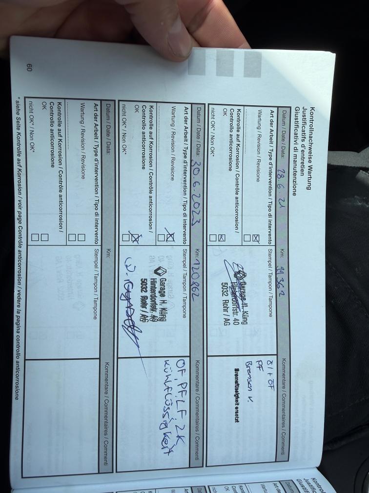 Klima geht nicht, Sommer und Winterräder, Profil GUT, die grossen Kratzer und Beulen sind dokumentiert, der Wagen wird sicher noch den einen oder anderen Parkschaden haben und dem alter entrsprechende Kratzer. Keine mechanische Prüfung. Service ist überfällig, Auto lief bis 27.03.2026 täglich und ohne Probleme.