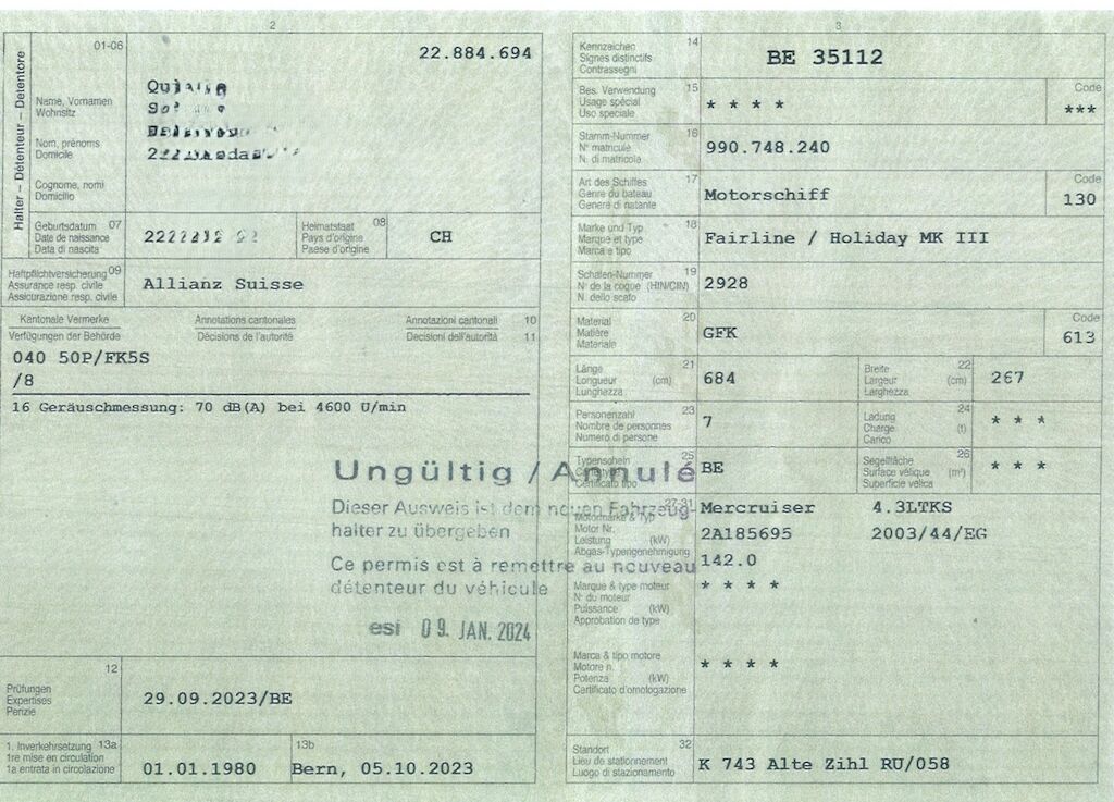 - aktueller Schiffsausweis (wird noch vermisst)- OHNE Trailer