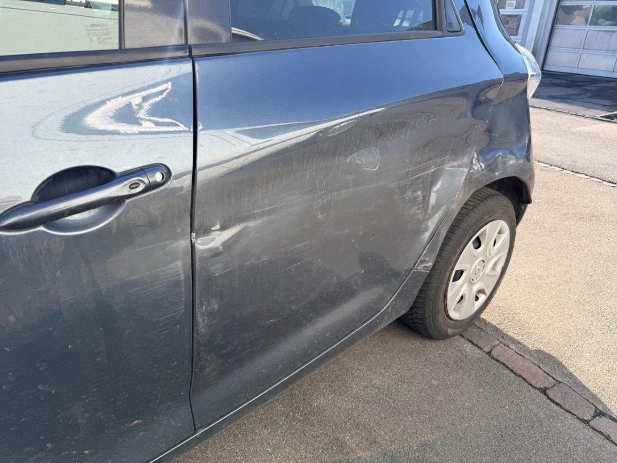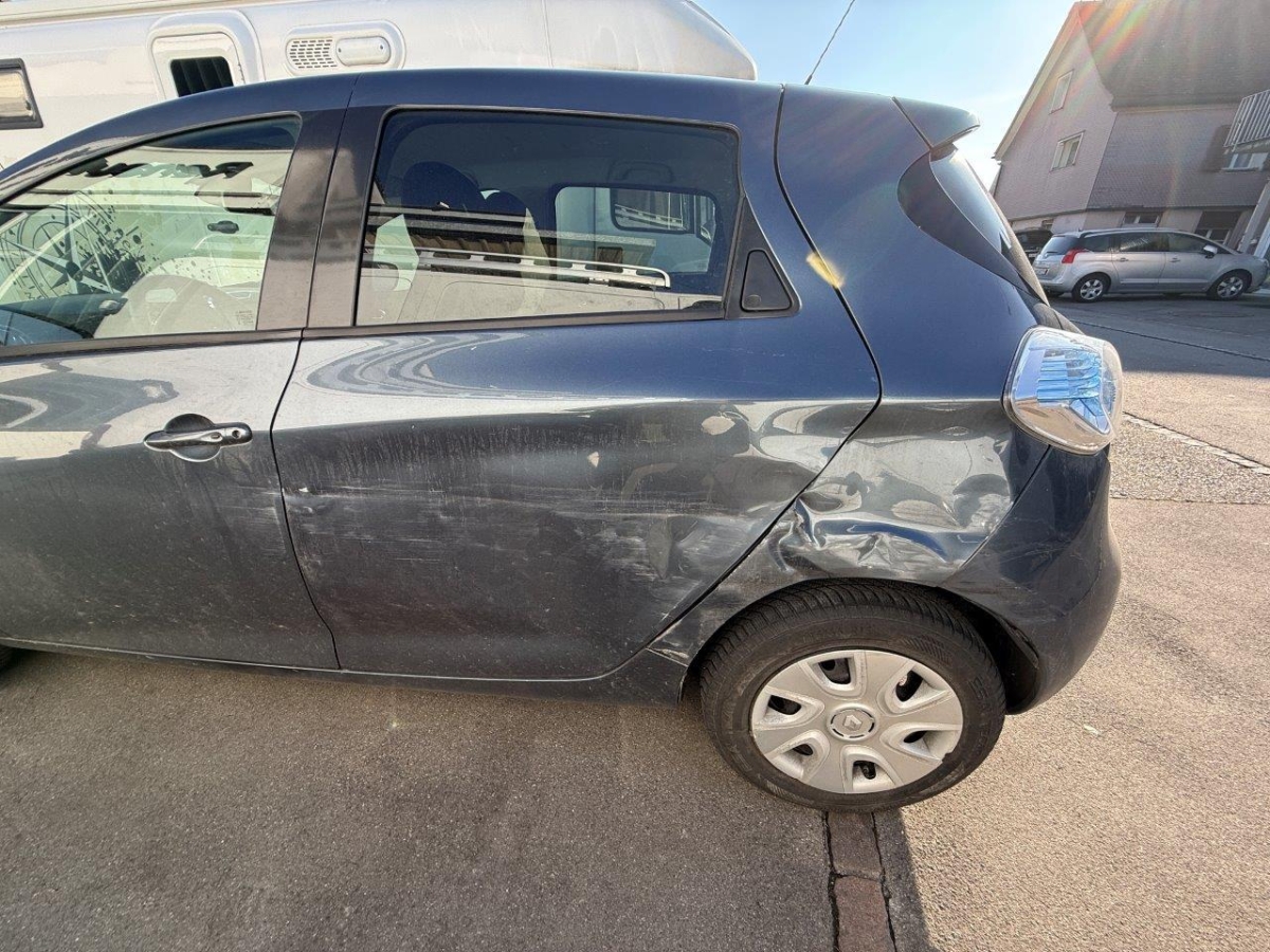 Anprall Seite links: Dabei wurden beide Türen, die Seitenwand, die Stossstange hinten, die Schwellerabdeckung sowie diverse Anbauteile beschädigt. Fahrzeug wird ohne Antriebsbatterie angeboten (Batterie Miete)
