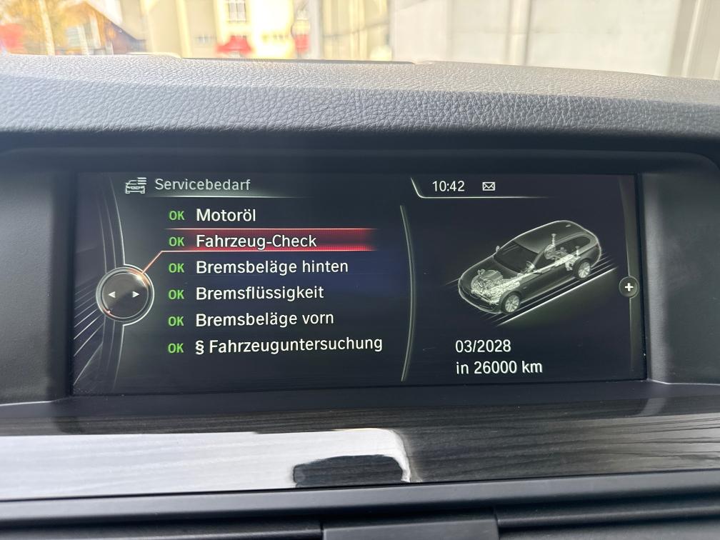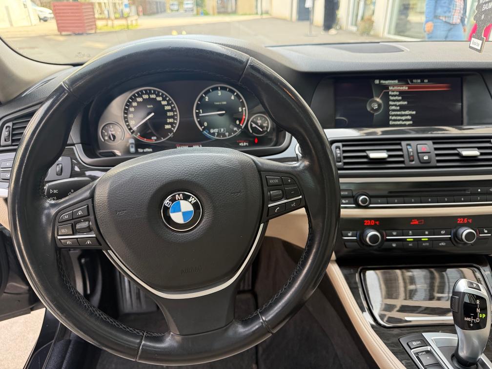 Fahrzeugdaten: • Modell: BMW 525d xDrive Touring • Motor: 2.0 Diesel (1995 cm³) • Leistung: 160 kW / 218 PS • Antrieb: Allrad (xDrive) • Getriebe: Automatik • Erstzulassung: 28.02.2013 • Sitzplätze: 5 • Farbe: Schwarz • Emissionscode: B5b ⸻ Ausstattungshighlights: • Panorama-Schiebedach • Lederausstattung beige • Elektrische Sitze mit Memory • Navigationssystem Professional • Rückfahrkamera + Parksensoren • Tempomat mit Limiter • Multifunktionslenkrad • Klimaautomatik • Bluetooth / Media • xDrive Allradantrieb (perfekt für CH-Verhältnisse) • ISOFIX ⸻ 🧼 Zustand: • Fahrzeug ist gepflegt und sauber • Innenraum in gutem Zustand (normale Gebrauchsspuren vorhanden) • Technisch einwandfrei