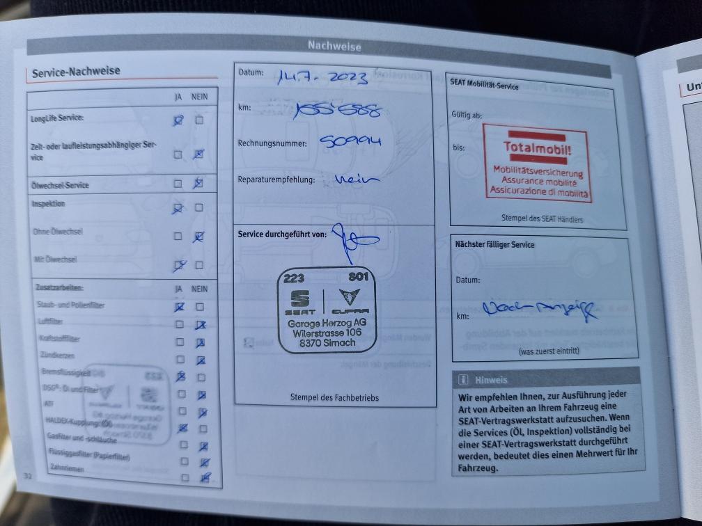 - Aussen und Innen Gebrauchsspuren gemäss Fotos (Steinschlag Frontscheibe, Flugrost, Kratzer) - Fahrzeug noch im Kundenbesitz - Kein Eintauschtest / Diagnose durchgeführt - keine Nachverhandlung und / oder Nachwährschaft