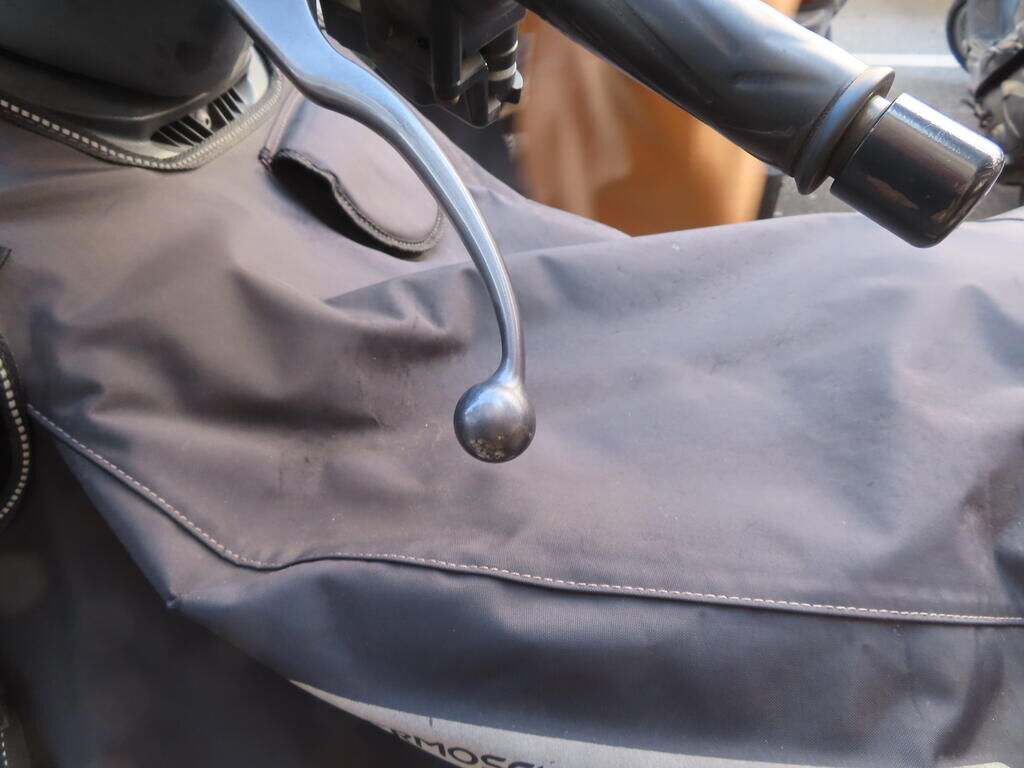 Chute sur flanc gauche: Pare-boue avant, rétroviseur, clignotant avant, levier, bas de caisse, carter de transmission, repose-pieds, emblème, carénages avant et arrière; endommagés. Motor Getriebe Vorderachse Hinterachse Airbags ausgelöst: 0 unbekannt ( Abfallcode 16.01.04ak )
