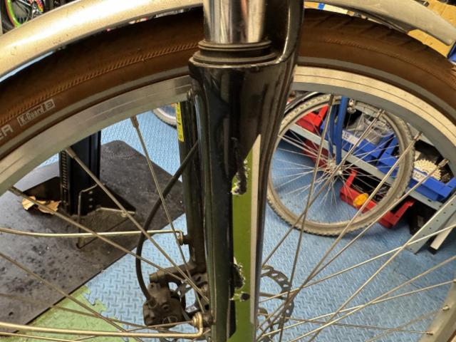 Vorderrad beschädigt. Gabel beschädigt. Lenker verbogen.