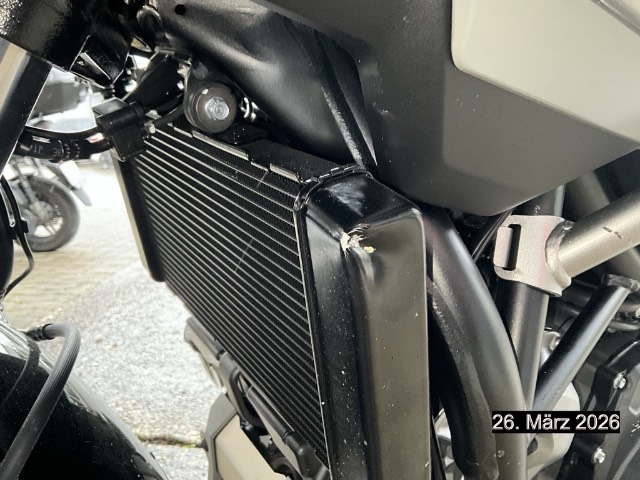 Beschreibung der Schäden: Seite links: Deckel Generator, Kühler, Seitenständer, Schwinge, Gabel, Verkleidungen, Spiegel, Lenker eingedrückt und zerkratzt Rahmen leichte Kratzspuren Zubehör wird noch demontiert.