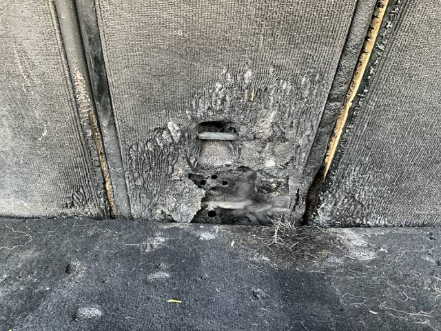 Fahrzeug weist im Innenraum Brandspuren auf.