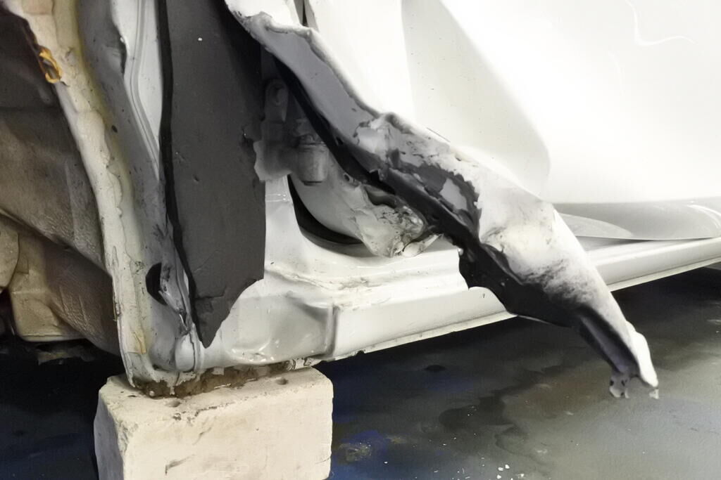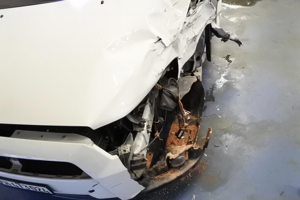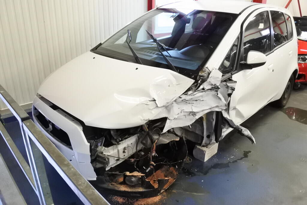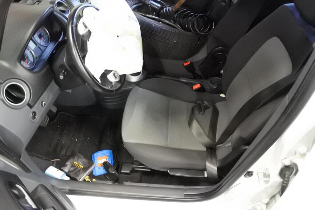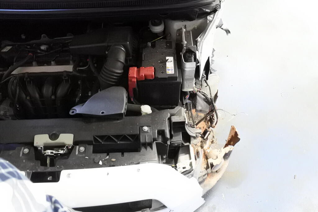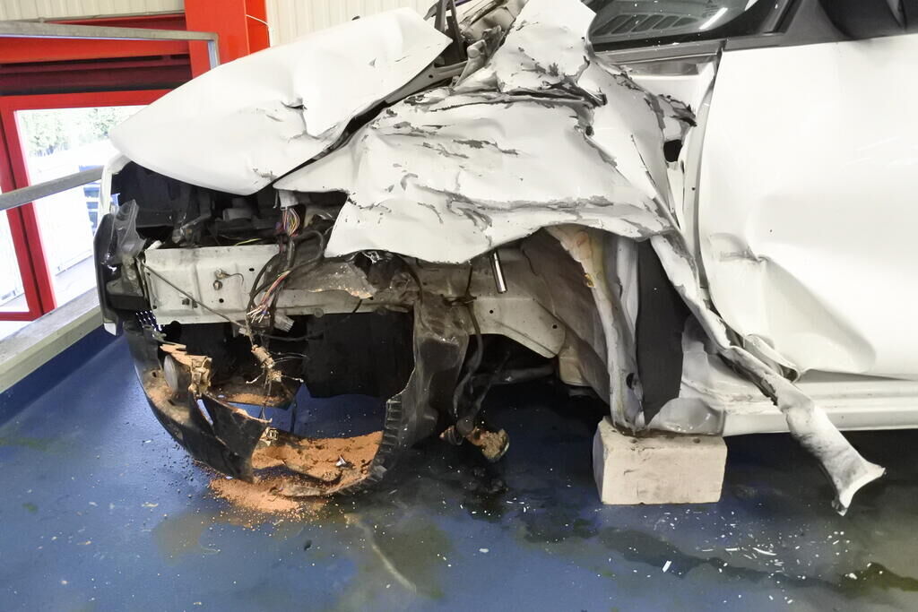 Die Stossstange mit Anbauteilen, Befestigungen, die Quertraverse, der Scheinwerfer, die Motorhaube, der Schlossträger, der Kotflügel mit Aufnahme, Radhausschale, das Radhaus, das Scheibenrad mit Aufhängung und Lenkung, die Fahrertür sowie der Schweller sind beschädigt. Beide Frontairbags und die Gurtenstraffer vorne wurde ausgelöst.Das Armaturenbrett und die Frontscheibe sind zerstört. Weitere Schäden gehen aus den Fotos hervor. Motor Getriebe Vorderachse Hinterachse Airbags ausgelöst: 2 unbekannt ( Abfallcode 16.01.04ak )