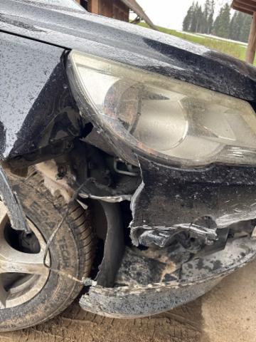 Front eingedrückt. Frontblech/Maskenblech eingedrückt. Radhaus vorne rechts eingedrückt / gestaucht. Längsträger vorne rechts und links gestaucht. Fahrzeugvorbau verschoben.