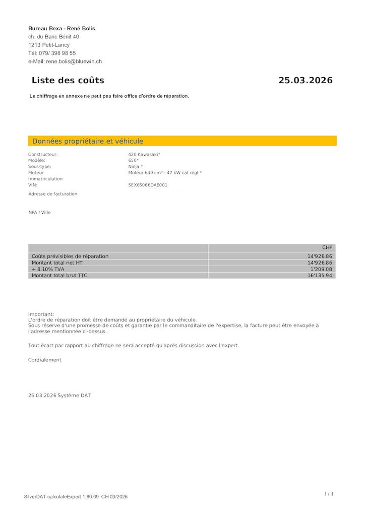 Châssis déformé Direction et suspension avant déformés. Guidon déformés. Leviers de freins déformés Carénages avant cassés. Jante avant cassée. Carter moteur frotté Motor Getriebe Vorderachse Hinterachse Airbags ausgelöst: 0 unbekannt ( Abfallcode 16.01.04ak )