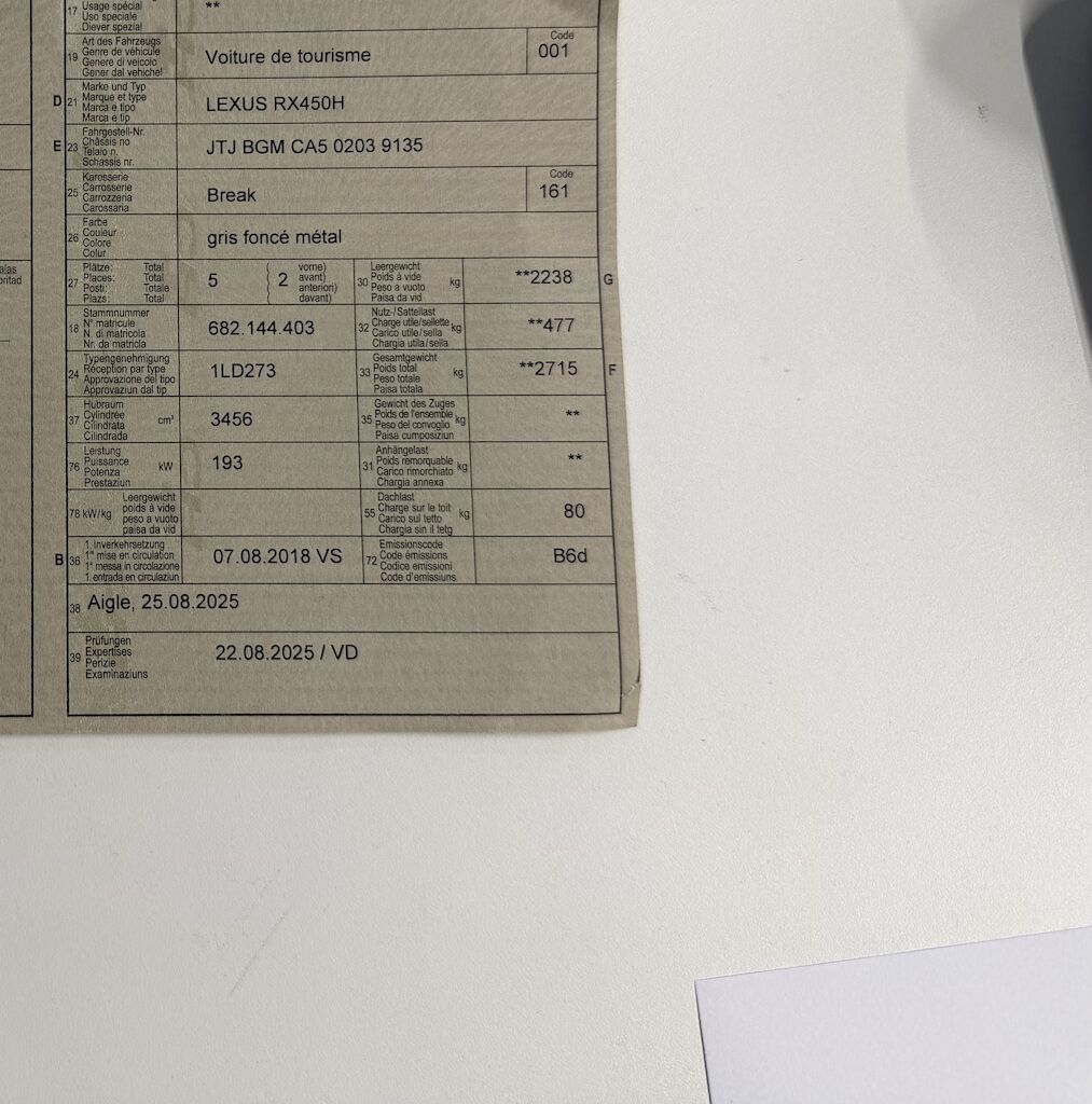 Pas de contrôle technique (essai en atelier) effectué Motor Getriebe Vorderachse Hinterachse Airbags ausgelöst: 0 Nein ( Abfallcode 16.01.04ak )