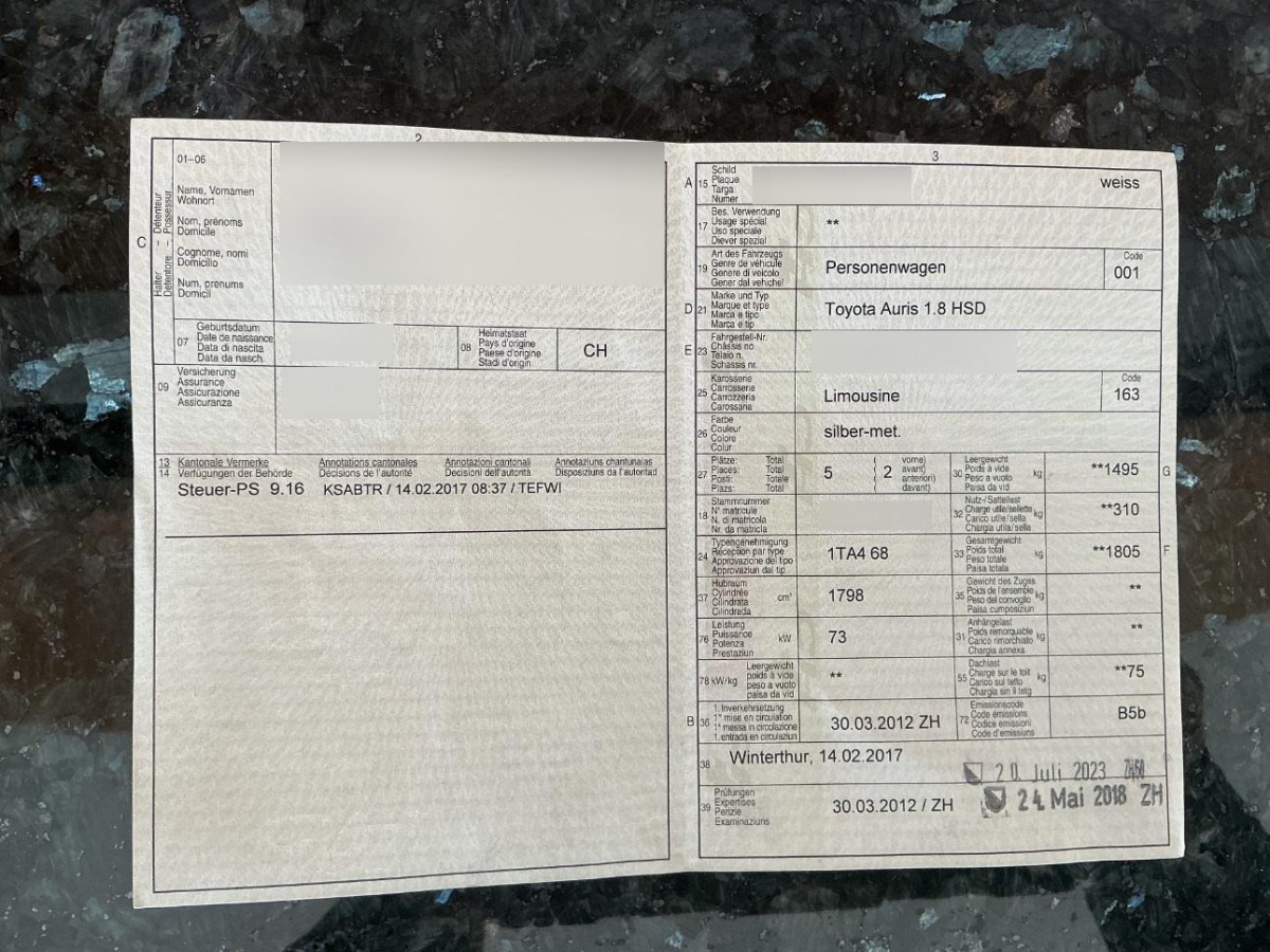 Pollenfilter (Staubfilter), Höhenverstellbare Gurten vorne, Radiofernbedienung, Berganfahrhilfe (Hill Holder), Bremsassistent (BAS), Assist: Tempomat, Polster: Stoff-Ausstattung, Tankdeckel-Entriegelung von innen, Media: Bluetooth-Schnittstelle, Innenlicht-Abschaltverzögerung, Räder: Reifenreparatur-Set (Tire Fit), Airbag: Seitenairbag für Fahrer und Beifahrer, Laderaumabdeckung, ISOFIX Kindersitzvorrichtung, Info-Display, Scheibenwischer vorne mit Intervall, Airbag: Knie-Airbag für Fahrer, Media: Multimedia Audiosystem Toyota Touch, Heckscheibenheizung, Multifunktionsanzeige, Heckspoiler, Radiovorbereitung, Dachantenne und, Tageskilometerzähler, Cupholder vorne, Elektrische Fensterheber vorne + hinten, Antiblockiersystem (ABS), Regen- und Dämmerungssensor, Wegfahrsperre elektronisch, Servolenkung geschwindigkeitsabhängig, Airbag: Window-Kopfairbags, Aussentemperaturanzeige, Seitenaufprall-Schutzsystem, Stossstangen, Aussenspiegel und Türgriff in Wagenfarbe, Licht: Nebelscheinwerfer, Handschuhfach, Digital Uhr, Sitze mit Schleudertrauma-Schutzsystem, Drehzahlmesser, Getriebe: Stufenloser Automat, Leseleuchten, Armlehne vorne mit Ablagefach, Mittelarmlehne vorne, Airbag: Airbag Fahrer und Beifahrer, Airbag: Airbag Beifahrer deaktivierbar, Assist: Rückfahrkamera, Sitze: Vordersitze heizbar, Klima: Klimatisierungsautomatik, Licht: Nebelschlussleuchte, 3 Kopfstützen hinten, Katalysator geregelt, Ablagefach unter dem Beifahrersitz, Getönte Scheiben, Smart Entry-/Start-System, Media: USB+AUX-Anschluss, Räder: Leichtmetallfelgen 17J mit Pneu, Licht: LED-Tagfahrlicht, Sitze: Rücksitzlehne geteilt abklappbar, Licht: Drittes Bremslicht, Lenkrad: Lederlenkrad, Media: 6 Lautsprecher, Sitze: Fahrersitz höhenverstellbar, Lackierung: Uni-Lackierung, Wassertemperaturanzeige, Sitze: Sportsitze vorne, Mittelkonsole mit Ablagefach, Beide Make up-Spiegel beleuchtet, Leuchtweitenregulierung von innen, Gurtstraffer vorne, Innenspiegel automatisch abblendbar, Heckscheiben-Wisch-/Waschanlage, Aussenspiegel rechts und links beheizbar und elektrisch verstellbar, Aluminium-Applikationen, Lenkrad: Lenkrad längs- und höhenverstellbar, Stabilitäts- und Traktionskontrolle (VSC und TRC), 3-Punkt-Sicherheitsgurte auf allen Plätzen