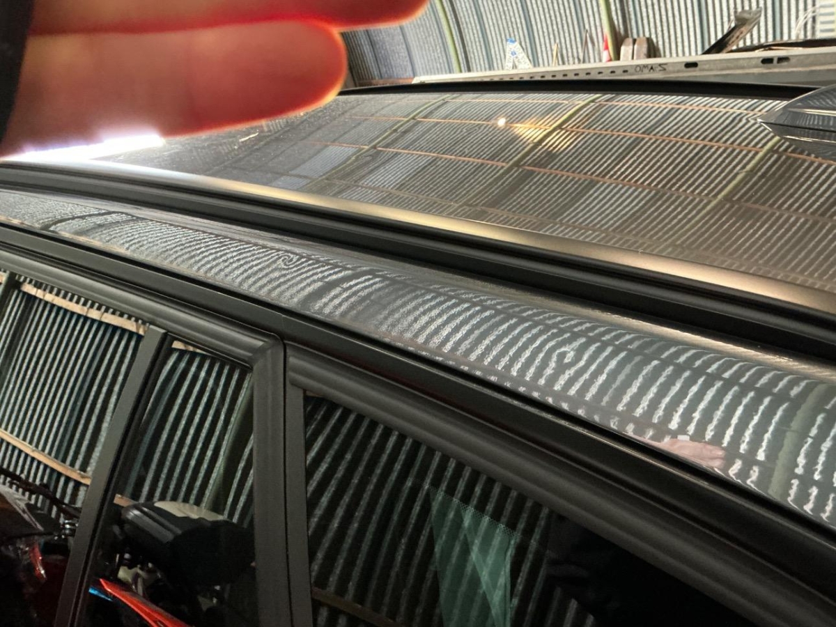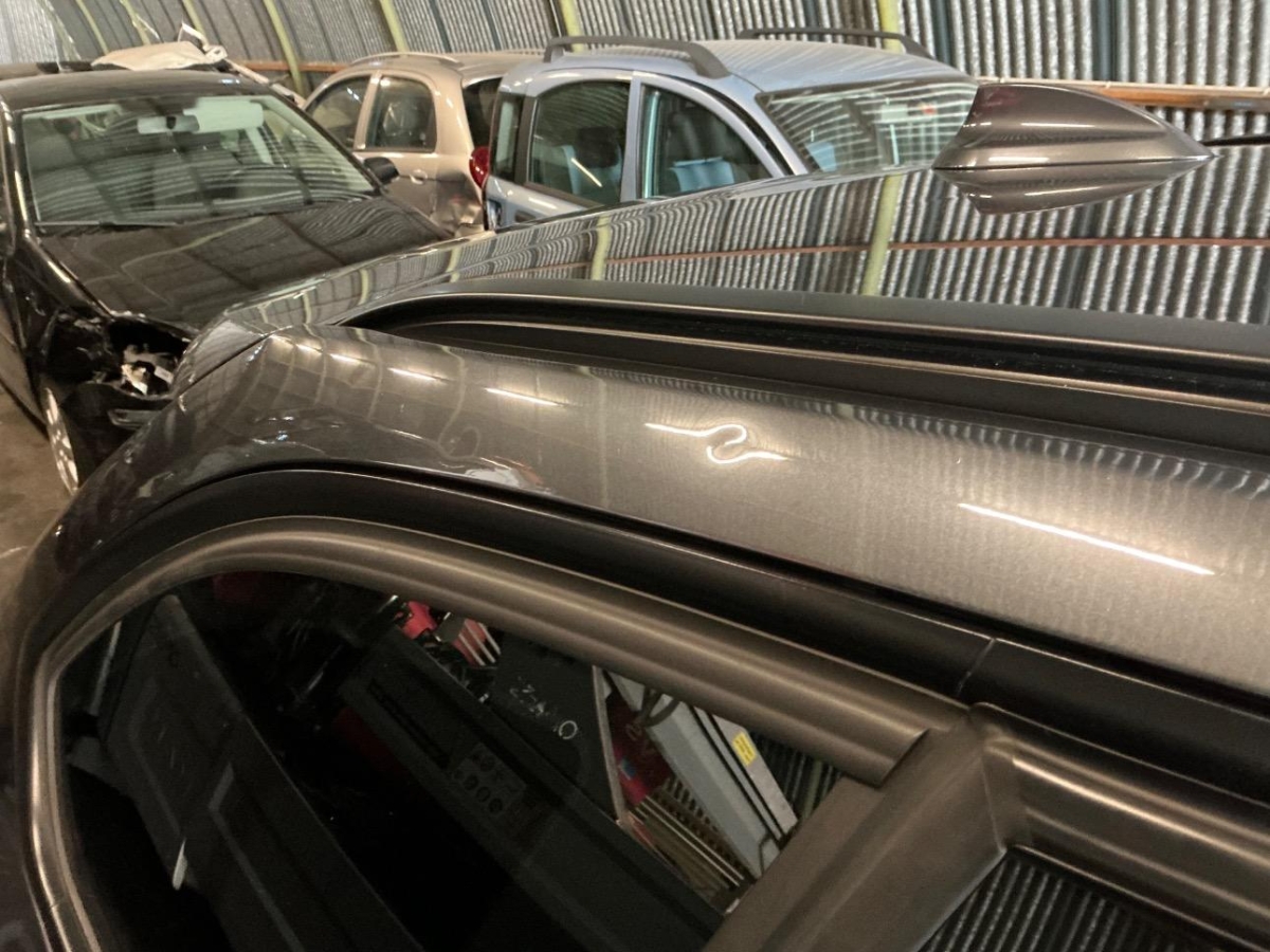 Das Fahrzeug hat rundum kleine Dellen, Beulen und Lackschäden, Hagelschaden, Kilometerstand geschätzt