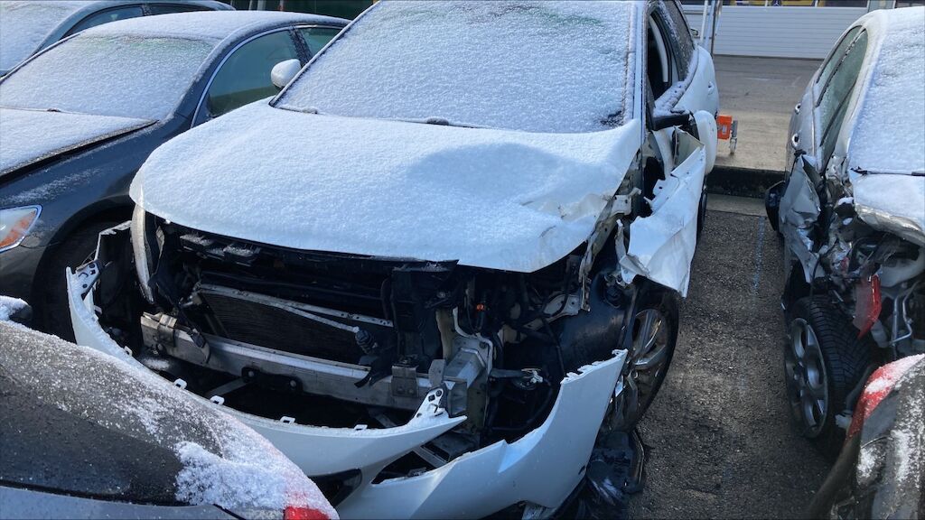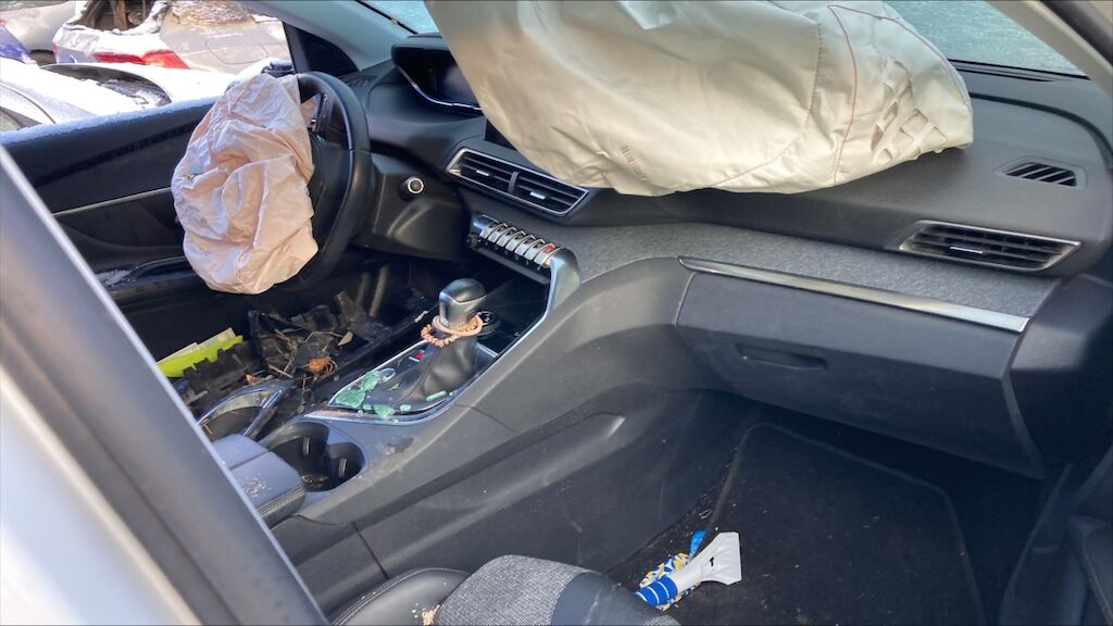 Zone avant: face avant, renfort, capot, aile gauche, radiateurs, berceau, moteur, phares, par choc choc fortement refoulés, mécanque gauche refoulée. Flanc gauche deux portes, bas de caisse, montants enfoncés, aile arrière pliée, phare cassé. Etat du moteur de la BV pas contrôlables, Intérieurs: ceintures déclenchées, deux airbags déclenchés. Motor Getriebe Vorderachse Hinterachse Airbags ausgelöst: 2 Nein ( Abfallcode 16.01.04ak )