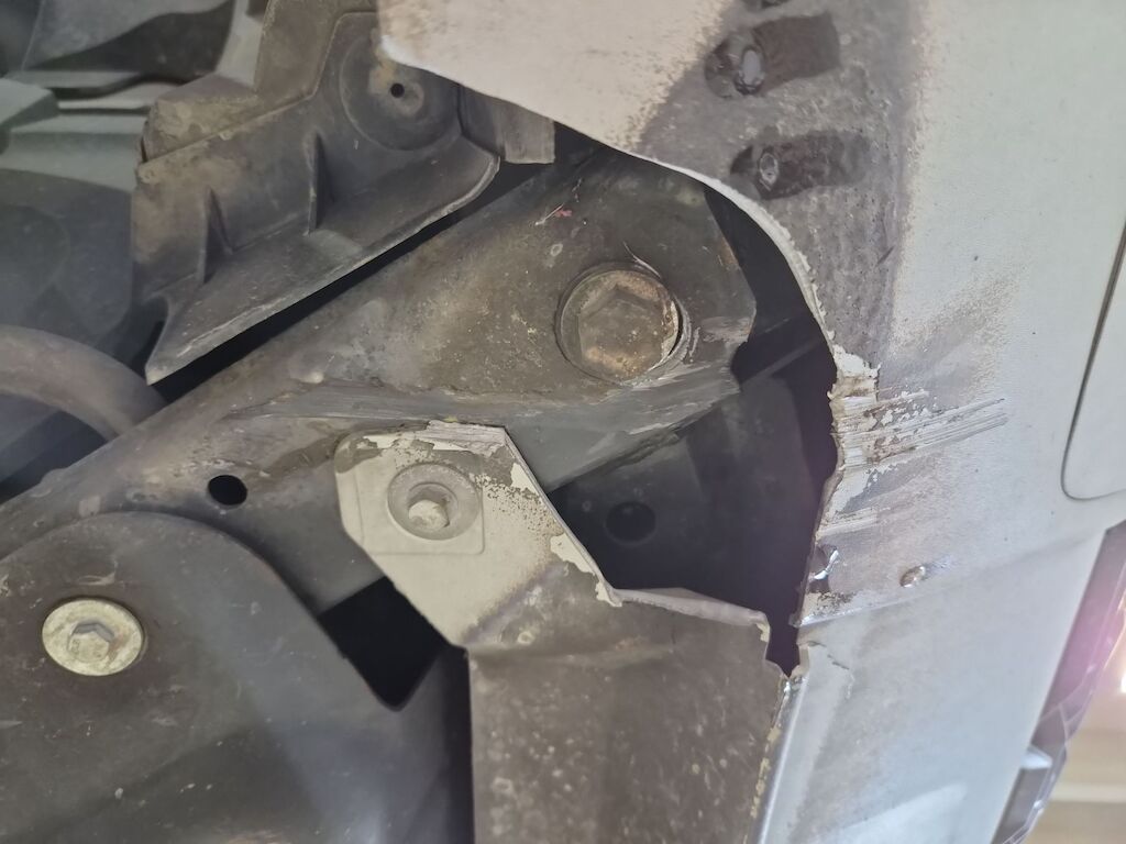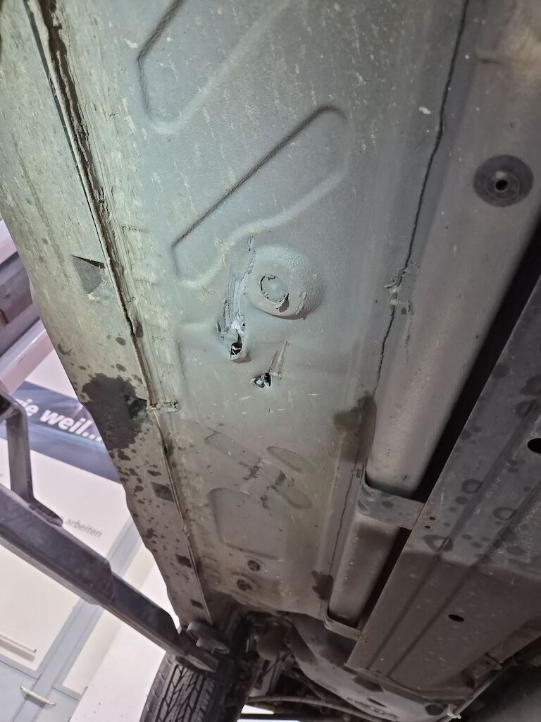 Unfallschaden durch Aufprall unterhalb des Fahrzeugs auf der rechten Seite mit Beschädigungen am Querträger, am Motorträger, am Bodenblech, am Hinterrad sowie diversen Anbauteilen Motor Getriebe Vorderachse Hinterachse Airbags ausgelöst: 0 Nein ( Abfallcode 16.01.04ak )