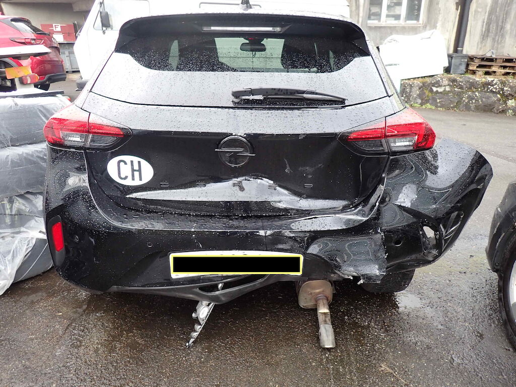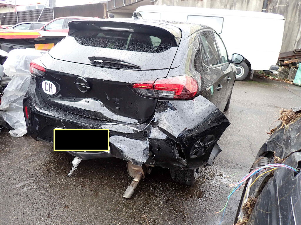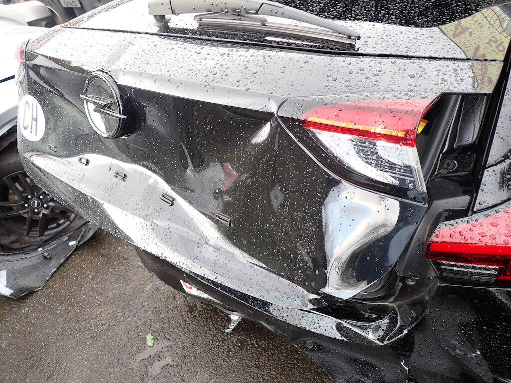 Heckklappe, Heckstossfänger, Querträger, Heckblech und Kofferboden eingedrückt; Spaltmass Seitenwand rechts zu Türe hinten rechts ungleich; Auspuffanlage gestaucht Motor Getriebe Vorderachse Hinterachse Airbags ausgelöst: 0 unbekannt ( Abfallcode 16.01.04ak )