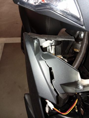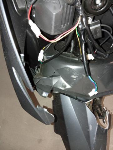 Frontteile Beschädigt. Scheinwerfer beschädigt. Halterung für Frontverschalung beschädigt. Lenkergewicht und Bremshebel links leicht verschliffen.