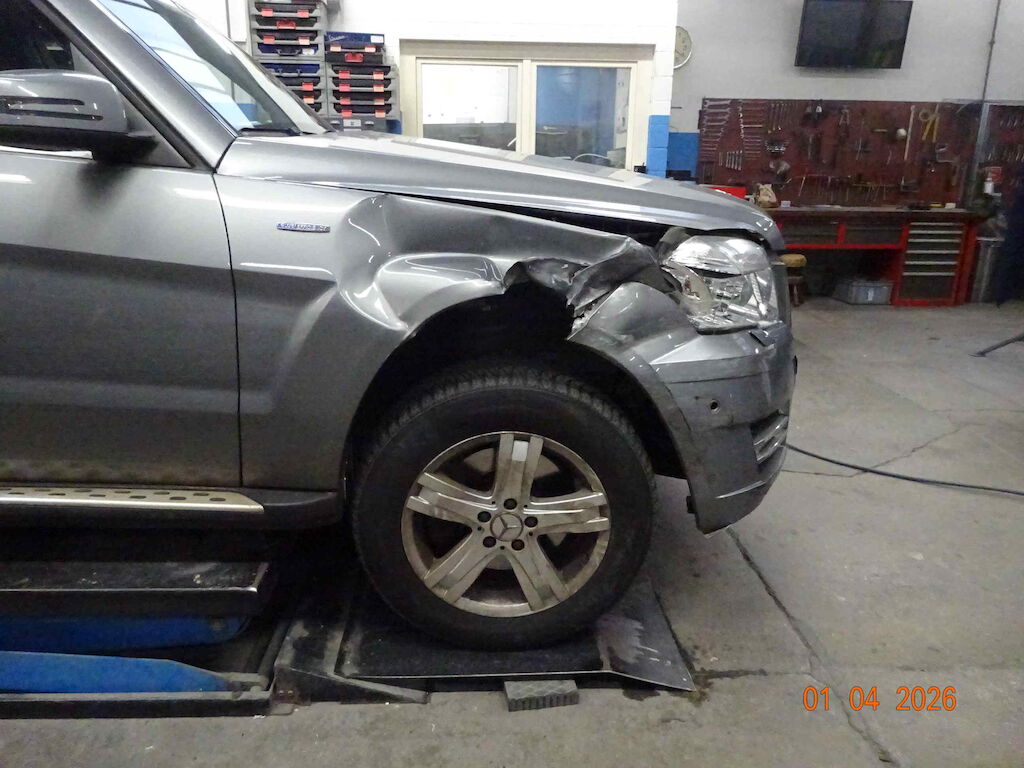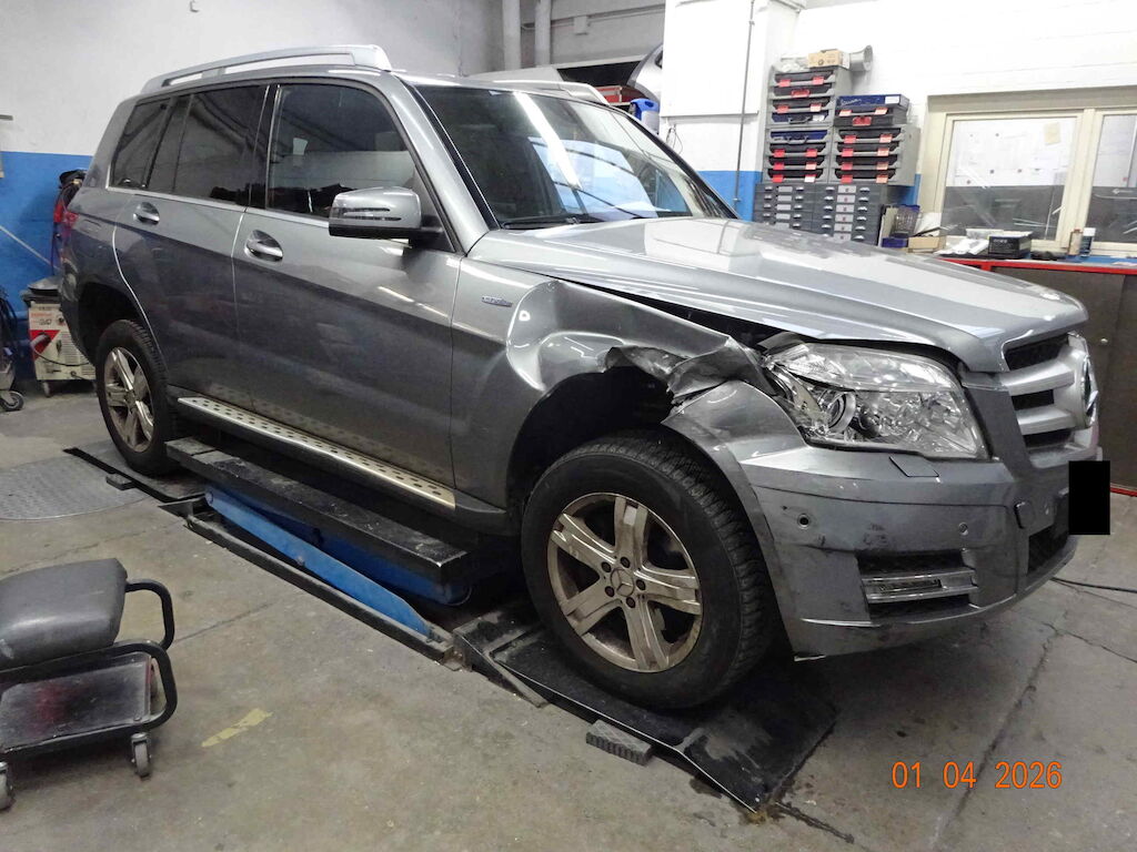 Stossfänger und Kotfluegel vr beschädigt, Scheinwerfer r gebrochen. Fahrwerk vr und Lenkung gestaucht. Motor Getriebe Vorderachse Hinterachse Airbags ausgelöst: 0 unbekannt ( Abfallcode 16.01.04ak )