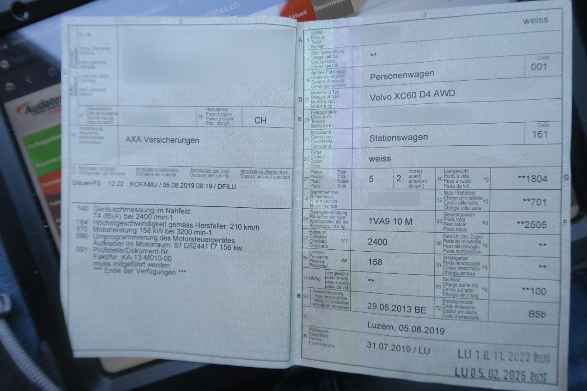Komfortschliessanlage mit Funk-Fernbedienung, Aktivkohlefilter mit automatischer Umluftschaltung, Klima: Klimatisierungsautomatik, Airbag: Airbag Fahrer und Beifahrer, Höhenverstellbare Gurten vorne, Partikelfilter und Oxydationskatalysator, Licht: Nebelschlussleuchte, Stossfänger, Radhausverbreiterung und Schutzleisten in robustem Kunststoff, Start-/Stop-Knopf, Fahrwerk: Dynamisches Fahrwerk, Innenspiegel automatisch abblendbar, Staufach hinter Mittelkonsole, Lenkrad: Lenkrad längs- und höhenverstellbar, AUX-Eingang in der Mittelkonsole, Automatische Parkbremse, Mittelkonsole mit Ablagefach, Aussenspiegel rechts und links beheizbar und elektrisch verstell- / einklappbar mit Einstiegsbeleuchtung, Fahrer-Informationssystem, Zusatzheizung, 12-Volt-Steckdose vorne, 3-Punkt-Sicherheitsgurte auf allen Plätzen, Gepäcksicherungsnetz, Schalthebelknauf in Leder, IDIS (Intelligent Driver Information System), Cupholder, Lenkrad: Sicherheitslenksäule, Airbag: Seitenairbags für Fahrer und Beifahrer, 6-Stufen-Automat Geartronic, Leseleuchten hinten, Tagfahrlicht, Frontscheibe Verbundglas, Scheibenwischer vorne mit Intervall, Elektrische Fensterheber vorne + hinten, Befestigungssystem im Gepäckraum, Heckscheiben-Wisch-/Waschanlage mit, Leseleuchten vorne, Laderaumabdeckung, Anhänger Stabilisierungkontrolle TSA, Scheibenwaschdüsen beheizt, Beide Make up-Spiegel beleuchtet, Sitze mit Schleudertrauma-Schutzsystem, ERIKSBERG Textil / T-Tec Ausstattung, Aussentemperaturanzeige, Seitenaufprall-Schutzsystem, Licht: Adaptives Bremslicht, Abschliessbares Handschuhfach, Kreuzstützen für Vordersitze verstellbar, Räder: Reifenreparatur-Set mit Kompressor, Colorverglasung, Heckklappe automatisch, City Safety Automatische Notbremsung bis 30 Km/h, Bordcomputer, Dynamische Stabilitäts- und Traktions- kontrolle DSTC, Regensensor für Scheibenwischer vorne, Doppelscheinwerfer, Innenlicht-Abschaltverzögerung, Assist: Bremsassistent (BAS), Zentralverriegelung mit Fernbedienung und automatischer Türverriegelung, Zierelemente Aluminium gebürstet, Airbag: Airbag Beifahrer deaktivierbar, Antiblockiersystem (ABS), Gurtstraffer vorne und hinten, Fenstereinfassung in Chrom, Sitze: Vordersitze höhenverstellbar, Dachspoiler, Beifahrersitz umklappbar, Allradantrieb permanent, elektronisch geregelt mit Instant Traction, Lenkrad: Multifunktionslenkrad, Steckdose 12V, Klima: Pollenfilter (Staubfilter), Wegfahrsperre elektronisch, Durchtauchschutz auf allen Sitzplätzen, Wegbeleuchtung, Tempomat, Assist: Einparkhilfe hinten, Gurtkontrolle, Armlehne vorne mit Ablagefach, 3 Kopfstützen hinten, Verbandskasten, Positionsleuchten vorne und hinten, Fussraumbeleuchtung vorne, Aktive Stabilitätskontrolle (RSC), Airbag: Kopf -/ Schulterairbag, Servolenkung, ISOFIX-Befestigungspunkte für Kindersitz an den äusseren Rücksitzen, 12-Volt-Steckdose hinten, Überrollschutzsystem ROPS, Audiosystem High Performance mit Farbmonitor, Bluetooth und USB Anschluss, Leichtmetallräder SEGIN 7,5x17J 235/65R17, Sitze: Rücksitzlehne geteilt abklappbar, Teppichfussmatten vorne und hinten