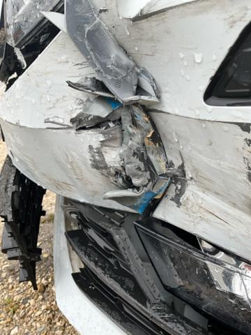 Front eingedrückt. Front links eingedrückt. Front rechts eingedrückt. Längsträger vorne rechts und links gestaucht. Fahrzeugvorbau nach rechts verschoben.