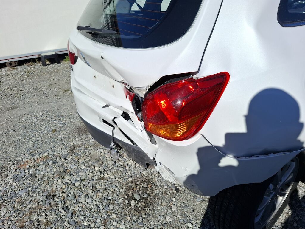 Dommage arrière droit: bloc arrière fortement plié déformé embouti enfoncé endommagé, hayon jupe tôle de fond de coffre renfort de pare chocs panneau latéral joue d'aile fortement pliés déformés emboutis enfoncés endommagés, coque pliée fortement déformée plis sur l'angle de toit, enveloppe de pare chocs feu cassés fissurés éclatés arrachés endommagés, mécanique de suspension pliée faussée fortement endommagée. Dommage avant gauche: capot moteur plié déformé embouti enfoncé endommagé, aile phare enveloppe supports garnitures de pare chocs coquille d'aile cassés fissurés éclatés arrachés endommagés, Motor Getriebe Vorderachse Hinterachse Airbags ausgelöst: 0 Ja ( Abfallcode 16.01.04ak )