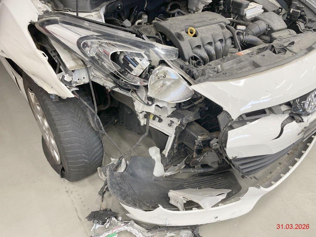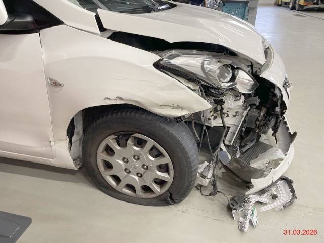 Stossstange und diverse Anbauteile beschädigt, Schlossträger verformt, Kühler und Kondensator verformt, beide Scheinwerfer gebrochen, beide Längsträger nach links abgeknickt, Radhaus vorne rechts eingedrückt, Aufhängung vorne rechts verformt, Kotflügel rechts eingedrückt, beide Türen rechts eingedrückt, Kotflügel links eingedrückt, Fahrer- und Beifahrerairbag ausgelöst, beide Gurtstraffer vorne ausgelöst, Heckdeckel lässt sich nicht öffnen / Vorbestandene Schäden: auf dem Dach sind ein paar Dellen zu sehen und weitere Gebrauchsspuren