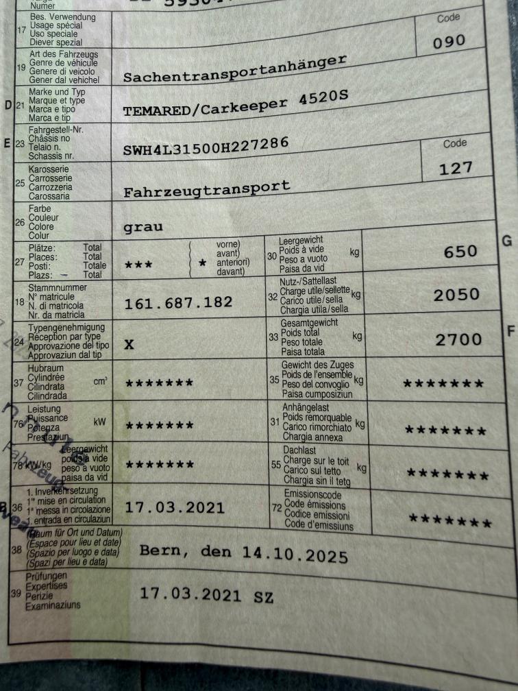 Temared Carkeeper 4520S - Fahrzeugtransportanhänger - ab Platz ohne Gewähr - KM Stand unbekannt