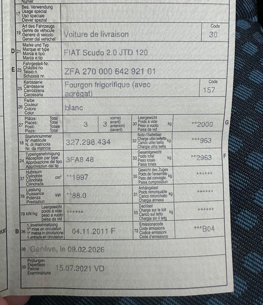 Fiat Scudo 2.0 JTD Kühlwagen 1 inverkersetzung 10.2011 B04 Kilometer 280000 Getriebe Manuell Keine Klima MFK 7.2021 Lauft gut und kühl bis -20 Fahrzeug hat altersbedingt leichte Gebrauchsspuren wie auf dem Fotos zu sehen sind. Motor und Getriebe laufen einwandfrei. Service wurden intern in der Firma gemacht kann auf Wunsch gedruckt werden Ladekoffer innen länge 2,33m Breite 1,77m Sehr gute Nutzlast 960kg