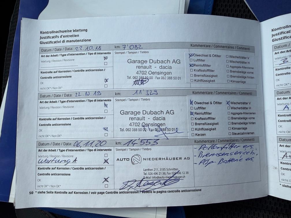 Fahrzeug ist aussen und innen in einem sehr guten Zustand, alle Service wurden immer in einer Dacia Garage gemacht. Letzte Prüfung 11.2025. Zahnriemen wurde im Mai 2025 bei 33119 km ersetzt inkl. Wasserpumpe und Flachriemensatz. Sommer und Winterräder mit Alufelgen. Winterreifen wurden im Nov. 2025 ersetzt. BEIM SCHALTEN MIT DEM AUTOMAT VOM 3. IN DEN 4. GANG BEIM BESCHLEUNIGEN SIT EINBE FIBRATION SPÜHRBAR. IST SCHWIERIG FESTZUSTELLEN VON WO ES KOMMT. ABER DAS FAHRZEUG IST SONST GUT FAHRBAR UND SCHLATET AUCH GUT!!
