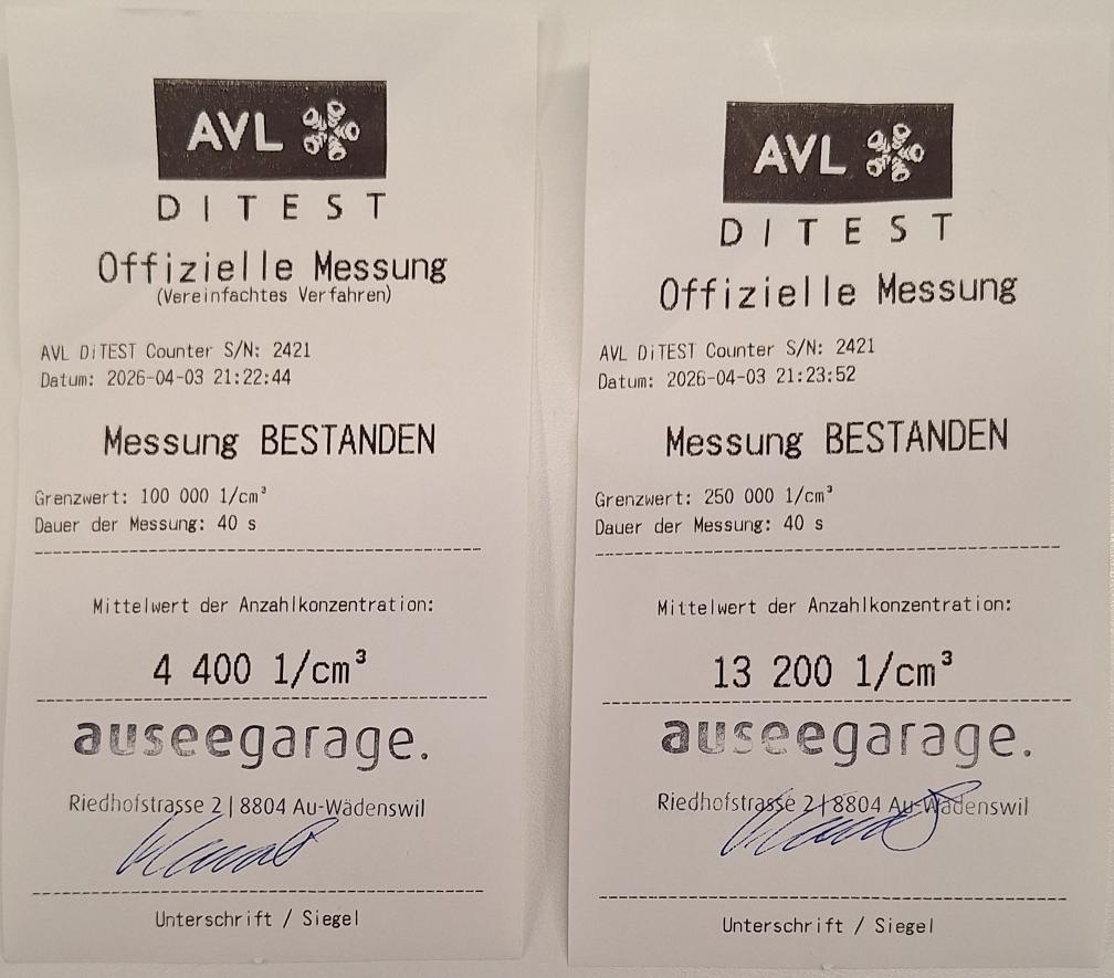 Dieselpartikelfiltertest wurde erfolgreich durchgeführt (Schriftlicher Ausdruck ist vorhanden).