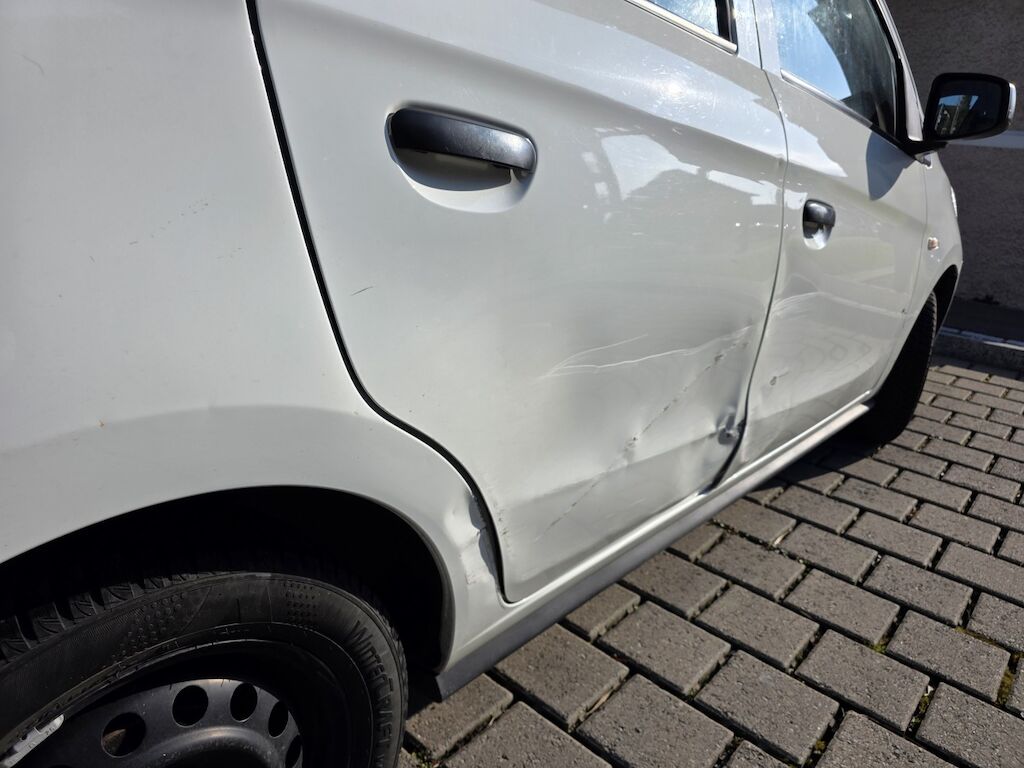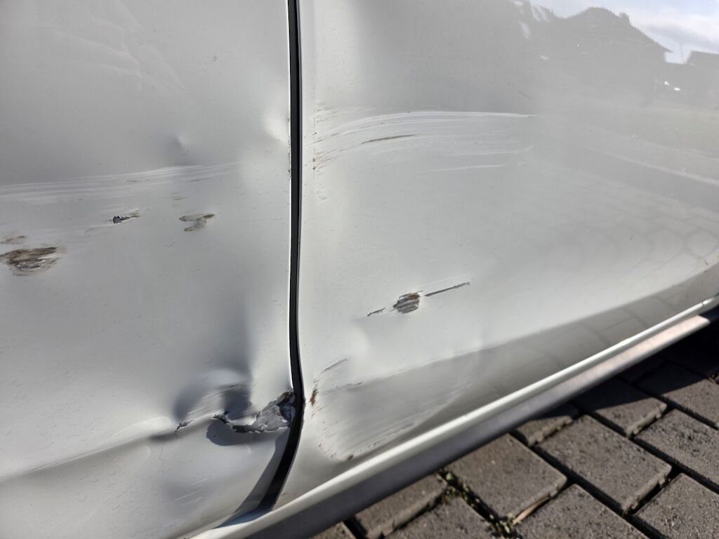 Seitenschaden rechts: Tür vo/hi und Radlauf hi re beschädigt. Motor Getriebe Vorderachse Hinterachse Airbags ausgelöst: 0 unbekannt ( Abfallcode 16.01.04ak )