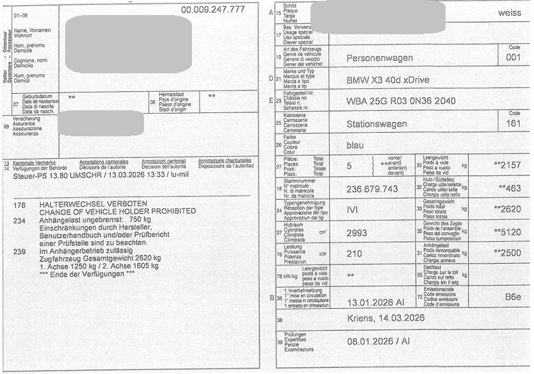 Reparaturkostenberechnung rein approximativ, da um ein genaues Schadenquantitativ zu berechnen das Fahrzeug teilzerlegt und die Lenkgeometrie / Carrosserie vermessen werden müsste.
