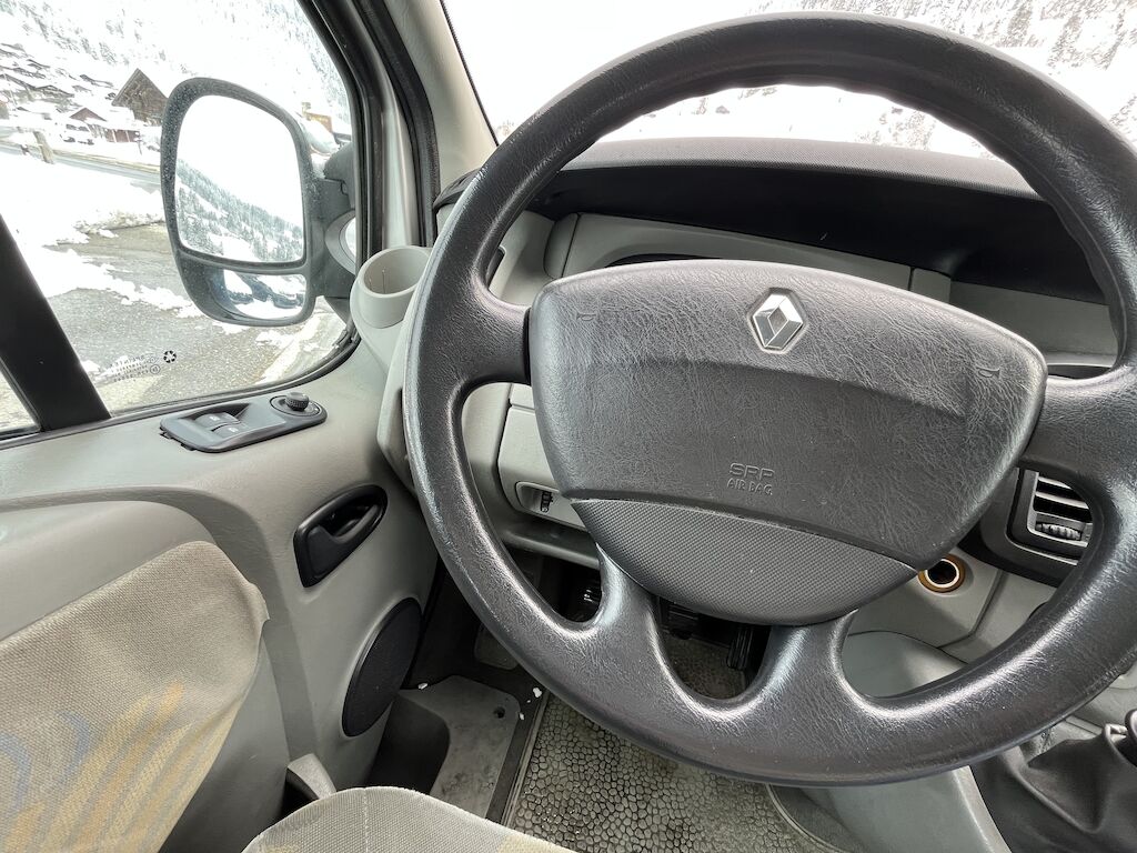 Dieser Renault Trafic fährt sich sehr gut.MFK fällig und möglicherweise ist die Kupplung bald fällig, in kaltem Zustand kann der Rückwärts-Gang manchmal nicht beim ersten Mal eingelegt werden. Geht dann aber beim 2./3. Mal wieder. Bei der Fahrt und auch nach dem Starten, wenn Fahrzeug nicht länger gestanden ist, geht es einwandfrei. KM garantiert, Serviceheft vorhanden. Es sind 5 Sitzplätze vorhanden, am Fahrzeugboden sind Halterungen für die 3. Sitzreihe vorhanden (wäre mit einer Sitzbank erweiterbar auf 8 Plätze)Mit Anhängerkupplung, Klima uvm.Die Winterpneu auf Fahrzeug sind neuwertig(Die Kundin hätte zusätzlich 4 Sommerräder mit neuwertigen Reifen, bei Interesse können diese gegen Aufpreis dazu gekauft werden)