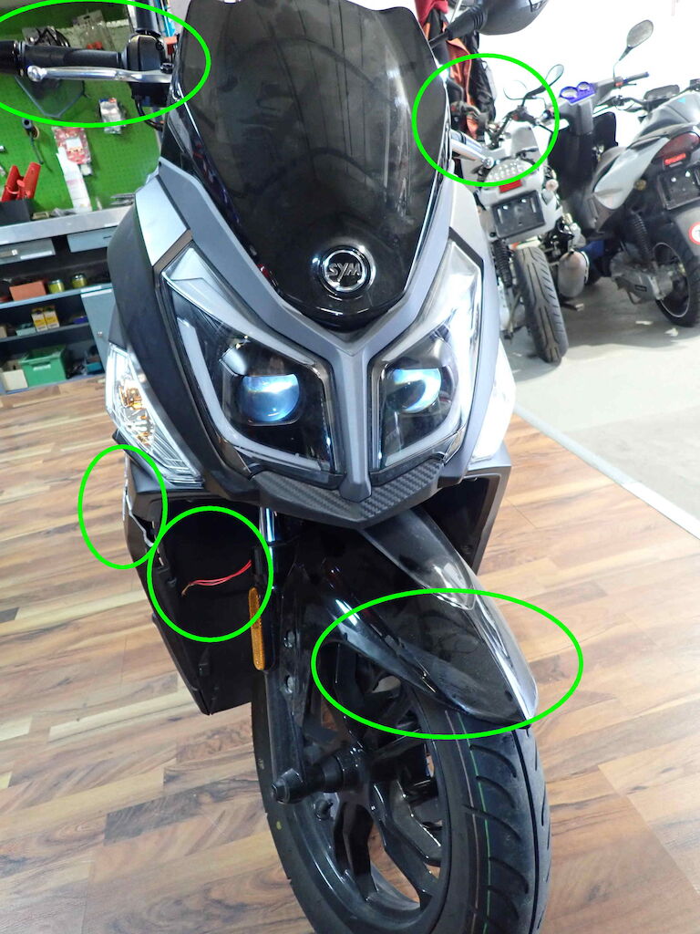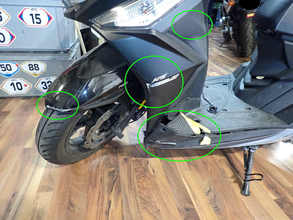 Scooter volé, puis retrouvé.Direction, selle, serrure forcé, cassé.Jeu direction, point dur, braque mal.Cablage arraché de la serrure pour démarrer.Le moteur démarre selon réparateur