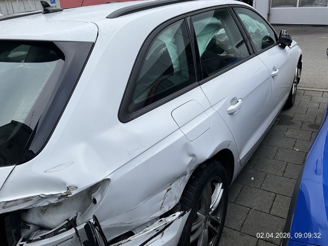 Beschreibung der Schäden: Front-, Seitem-und Heckschaden: Front Mitte/links stark eingedrückt und nach rechts gestaucht. Stosstange, Träger, Schlossträger, Kotflügel Scheinwerfer, alle Kühler eingedrückt. Risiko Aufhängung vorne links Heck: Stossstange, Heckklappe, Heckblech und Seitenwand hinten rechts stark eingedrückt. Risiko Aufhängung hinten rechts Risiko Motor und Anbauteile, Motor läuft nicht (Sicherheitsabschaltung). Fahrer-, Beifahrer- und beide Kopfairbags ausgelöst, alle Gurtstraffer ausgelöst.