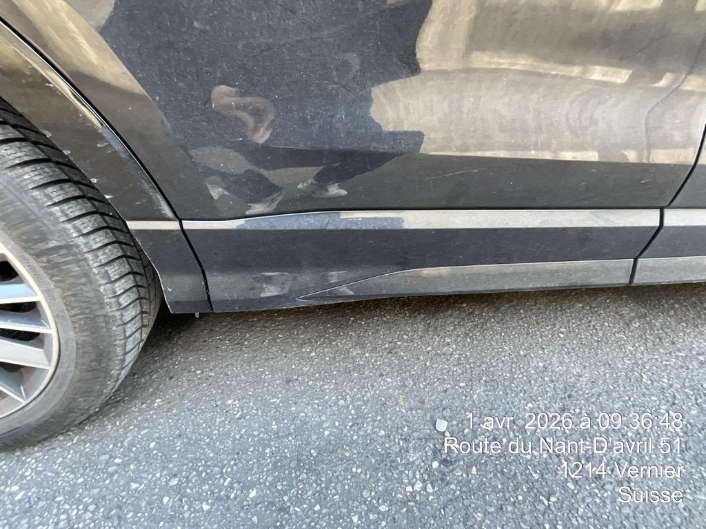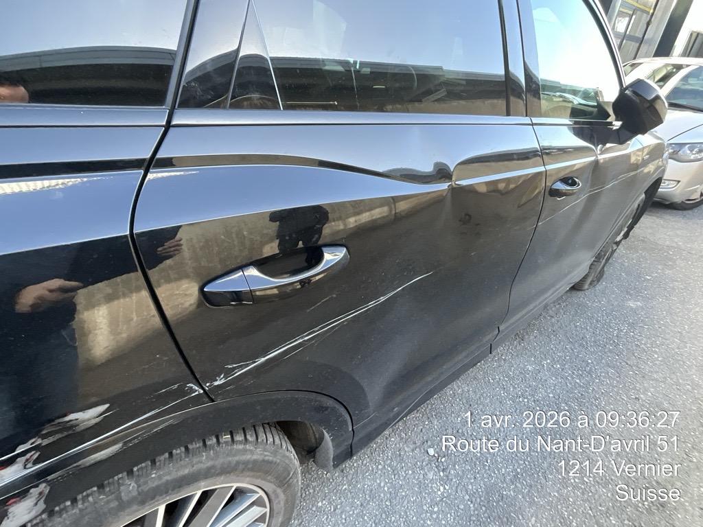 Choc latéral droit: bouclier avant et arrière éraflés, aile arrière, portes avant + arrière, aile avant déformés - LISTE NON EXHAUSTIVE / Dommages préexistants: traces d'utilisation