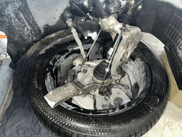 Vorderachse ist beschädigt. Aufhängungsteile vorne rechts beschädigt. Lenkgetriebe ist beschädigt.