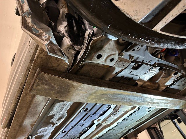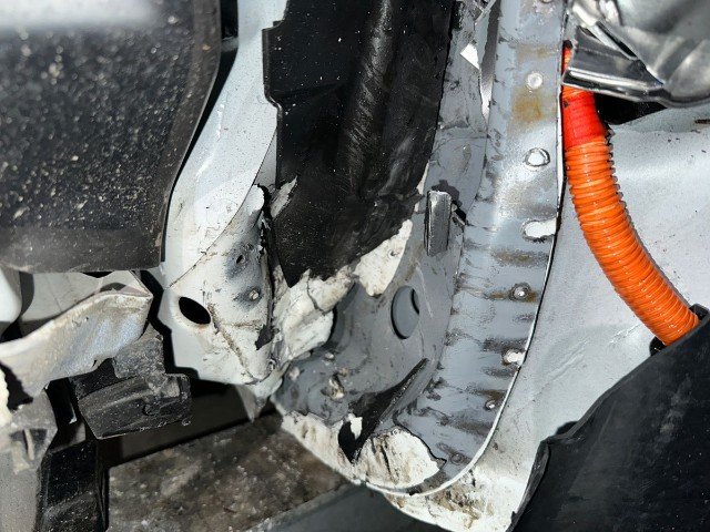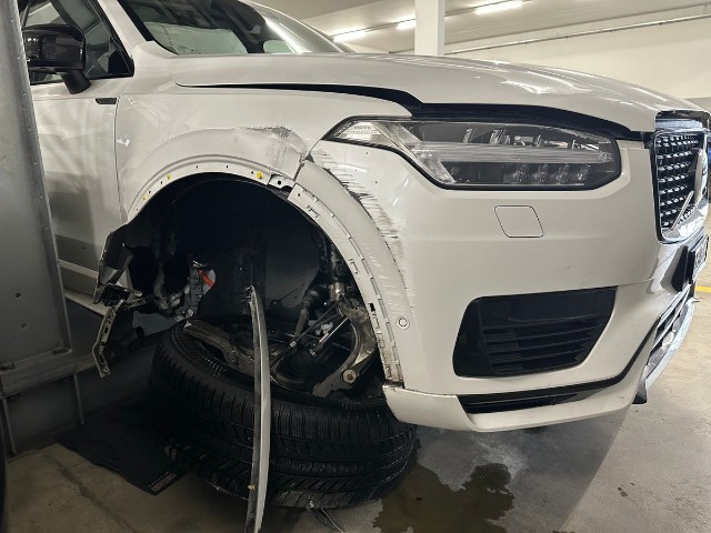 Radhaus vorne rechts eingedrückt / gestaucht. Längsträger vorne rechts gestaucht.