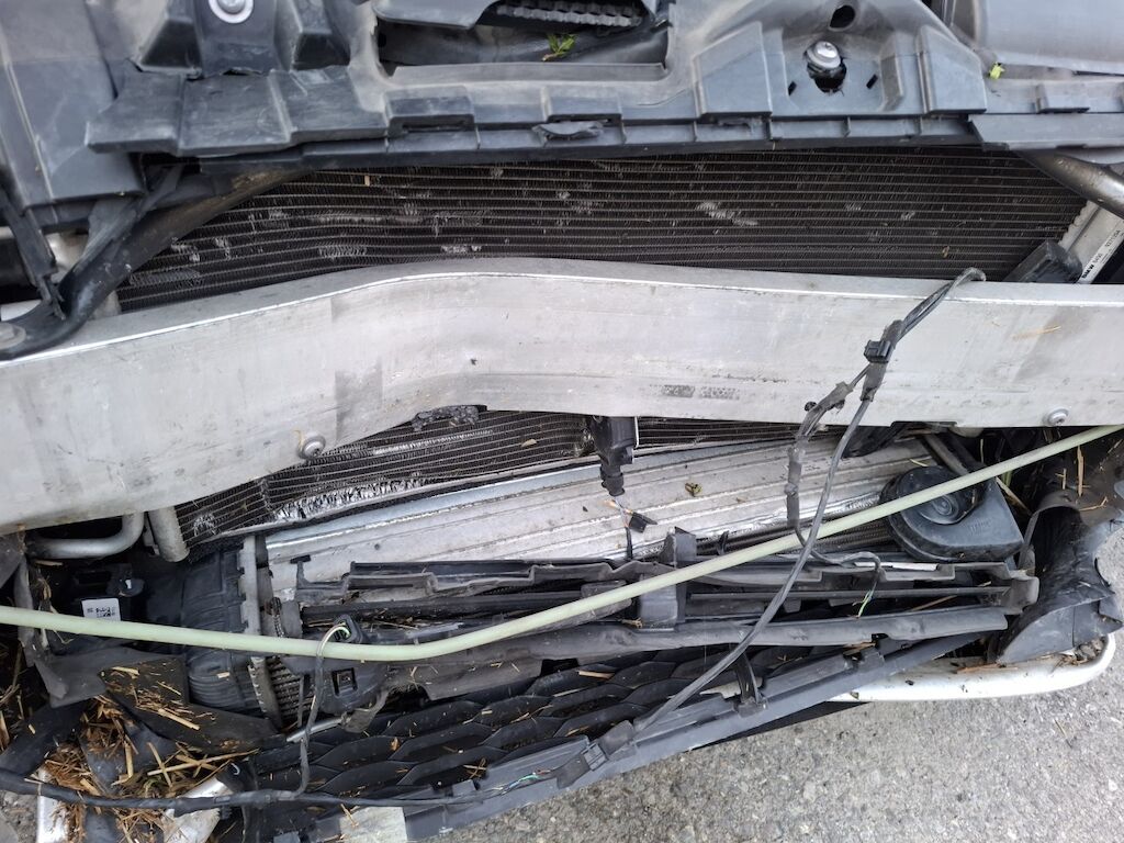 Dommage partie frontale: bloc avant fortement plié déformé embouti enfoncé disloqué endommagé, capot moteur tôle frontale renfort de pare chocs longerons gauche et droit joue d'aile gauche et droite fortement pliés déformés emboutis enfoncés endommagés, phare gauche et droit enveloppe supports garniture grilles de pare chcs convoyeurs d'air radiateurs calandre bouche d'aération de captot moteur ventilateurs de refroidissement cassés arrachés endommagés, condenseur de climatisation radiateur de refroidissement percés déformés endommagés, airbags conducteur passager et rideau droit déployés, ceintures de sécurité rétractées (réserve sur le moteur et la mécanique). Dommage arrière: panneau latéral gauche plié déformé embouti enfoncé, vitre de custode droite cassée explosée, hayon découpé plié, feux gauche et droit cassés, banquette arrière arrachée. Motor Getriebe Vorderachse Hinterachse Airbags ausgelöst: 3 unbekannt ( Abfallcode 16.01.04ak )