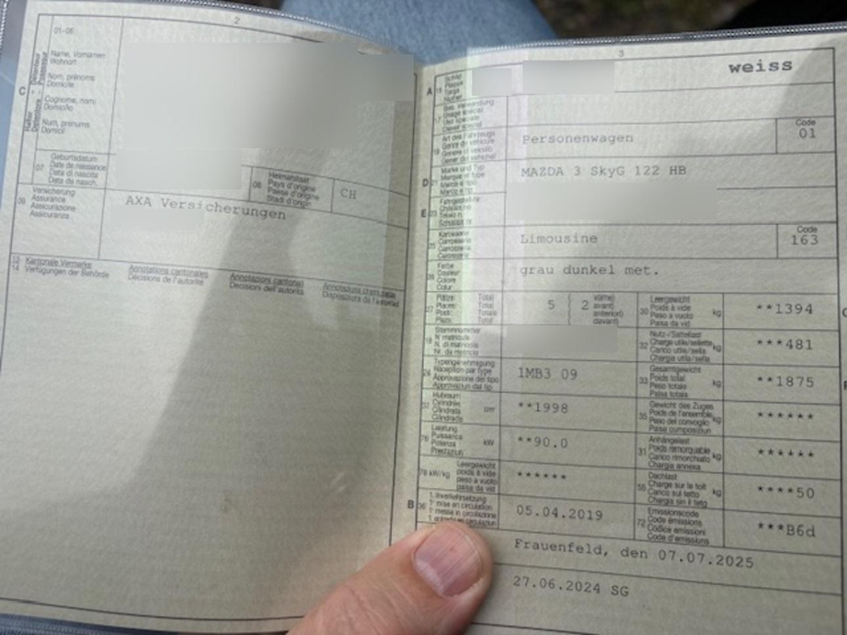 Licht: Drittes Bremslicht, Getönte Scheiben Privacy, Licht: Licht- und Regensensor, Assist: Berganfahrhilfe, Lenkrad und Schalthebelgriff in Leder, Media: Touchscreen, Assist: 360° Kamera inklusive Rückfahrkamera, Adaptiver Tempomat ACC, E-Call, Dachspoiler, Aussenspiegel in Wagenfarbe, Stopp-/Start-System, Knie-Airbag für Fahrer, Media: Head-Up Display, Licht: LED-Tagfahrlicht, Licht: Coming-home-Funktion, Pre-Crash-Sicherheitsystem, Licht: Automatisches Fernlicht, Scheibenwischer-Enteiser, Airbag: Airbag Fahrer und Beifahrer, Assist: Querverkehrsassistent hinten, Airbag: Kopfairbags vorne und hinten, Getriebe: 6-Gang-Getriebe, Assist: Spurwechselassistent, Digital Uhr, Innenspiegel automatisch abblendbar, Licht: Matrix LED Scheinwerfer, Wegfahrsperre elektronisch, Assist: Einparkhilfe vorne, Sitze: Vordersitze heizbar, Innenleuchten LED, 3-Punkt-Sicherheitsgurte auf allen Plätzen, Räder: 4 Leichtmetallfelgen 18J mit Pneu, Auto-Hold-Funktion, Heckscheibenheizung, Drehzahlmesser, Gurtstraffer vorne, Polster: Stoff-Ausstattung, Klima: 2-Zonen-Klimaautomatik, Elektronische Parkbremse, Spurhalteassistent Lane Assist und Totwinkelassistent Blind Spot Detection, Wassertemperaturanzeige, Media: Compatible mit Apple CarPlay und Android Auto, Elektrische Fensterheber vorne + hinten, Lackierung: Uni-Lackierung, Bremsenergie-Rückgewinnung, Licht: LED Heckleuchten, Sitze: Beifahrersitz höhenverstellbar, Media: 12 Lautsprecher, Sitze: Rücksitzlehne geteilt abklappbar, Assist: Rückfahr-Notbremsassistent, Steckdose 12V, Assist: Torque Vectoring, Assist: Verkehrszeichenerkennung TSR, (Traffic Sign Recognition), erfordert Navigationssystem, Rahmloser Innenrückspiegel, Assist: ABS, EBD elektronische Bremskraftverteilung, Lenkrad: Multifunktionslenkrad, Aussenspiegel elektrisch einklappbar, Front Cross Traffic Alert, Sitze: Fahrersitz höhenverstellbar, Katalysator geregelt, Lenkrad: Lenkrad beheizbar, Assist: ATTENTION ASSIST (Aufmerksamkeitsassistent), Diebstahlwarnanlage, Media: USB-Anschluss, Aussenspiegel rechts und links beheizt, Stauassistent, Airbag: Seitenairbags vorne, MZD Connect mit 8,8''-FTF-Farbdisplay und Multi Commander HMI auf der Mittelkonsole, Licht: Nebelschlussleuchte, Servolenkung, Keyless Entry, Media: Bose Premium Audio System, Assist: Traktionskontrolle (TCS-Traction Conrol System), Dachhimmel schwarz, Klima: Pollenfilter (Staubfilter), Sitze: ISOFIX Kindersitzvorrichtung, Media: Bluetooth-Schnittstelle mit Freisprecheinrichtung, Assist: Dynamische Stabilitätskontrolle (DSC), Zentralverriegelung mit Fernbedienung, Park Distance Control hinten, Getönte Scheiben, Start-/Stop-Knopf, Assist: City-Notbremsassistent SCBS mit Fussgängererkennung, Media: Digitaler Radioempfang (DAB/DAB+), Media: Navigationssystem, Rear Cross Traffic Alert (Rückwärts-Auspark-Assistent), Aussentemperaturanzeige, Höhenverstellbare Gurten vorne, Tageskilometerzähler