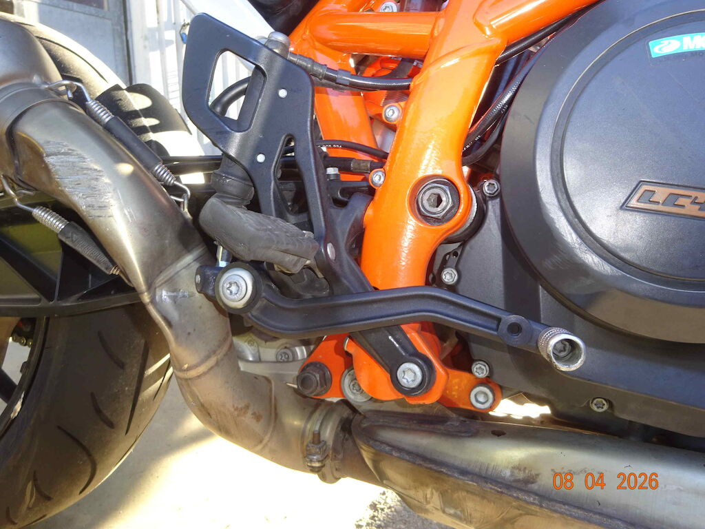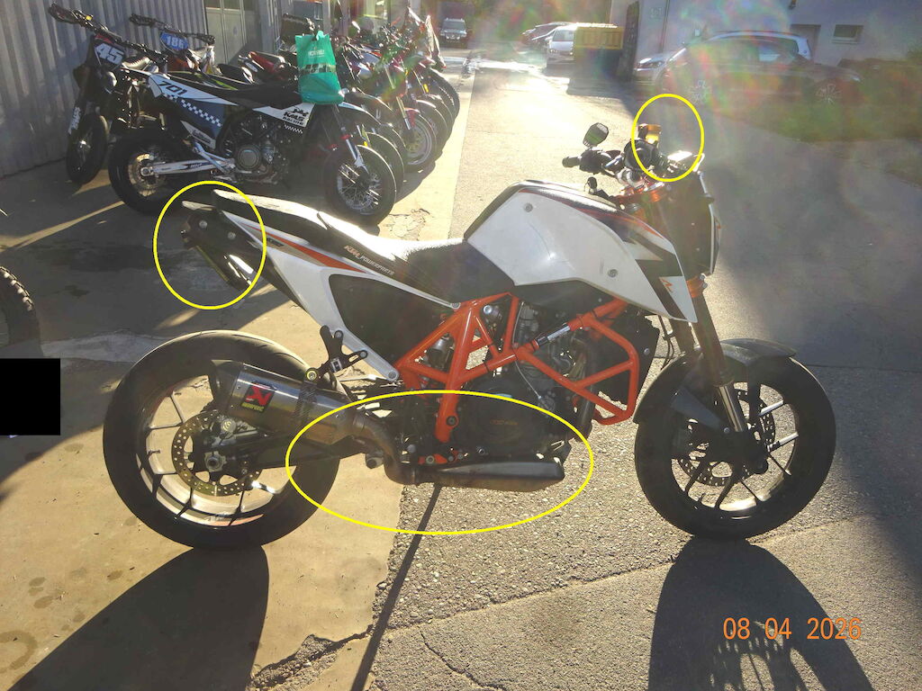 rechte Seite, Auspuff, Schalthebel, Felge hinten, Hinterradschwinge, Spiegel rechts, Heck