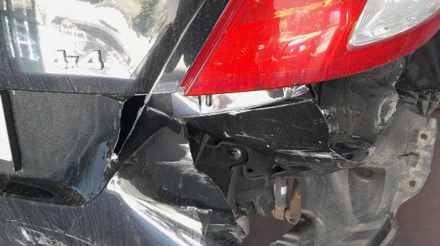 Heck: Heckschürze, Heckdeckel, Heckblech, Seitenwand rechts und Auspuffanlage deformiert/beschädigt/verbeult/verkratzt. / Vorbestandene Schäden: Vorne rechts: Frontschürze. Seite rechts: Aussenspiegelschale. Seite links: Aussenspiegelschale