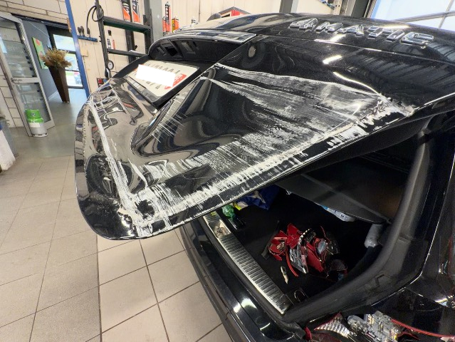 Beschreibung der Schäden: Heckdeckel, Stossfänger hinten, Seitenwand rechts deformiert. Heckleuchte rechts gespalten.