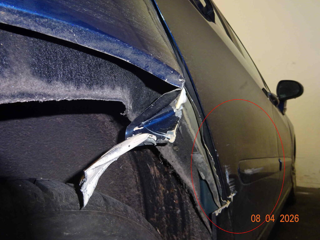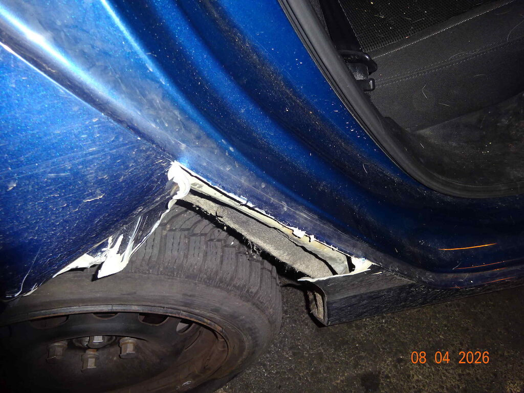 Stossstange hinten gerissen, Seitenwand rechts gestaucht und aufgerissen, Türfalz gerissen, Türe hinten rechts gestaucht, Felge schlag abbekommen. Reifen gerissen. Motor Getriebe Vorderachse Hinterachse Airbags ausgelöst: 0 unbekannt ( Abfallcode 16.01.04ak )