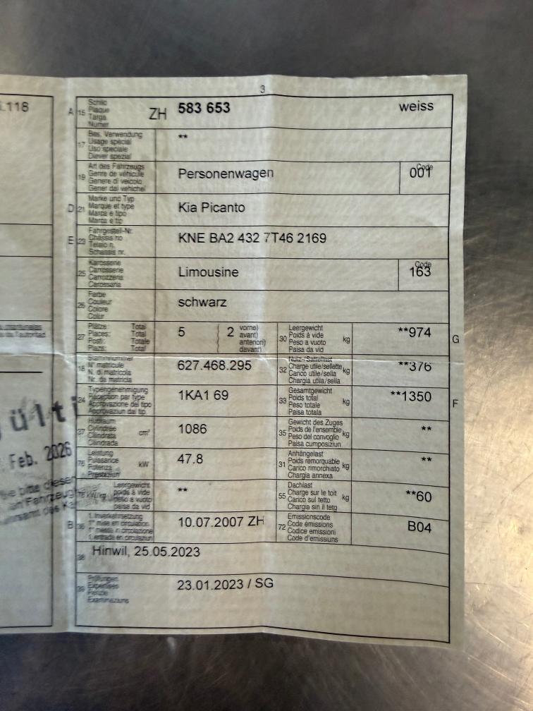 KIA Picanto 1.1 Klima 5 Türig Zentralverriegelung Elektrische Fenster vorne Alufelgen Winterreifen noch tip top Kupplung ersetzt Zahnriemen ersetzt im 2020 Letzter Service: 2024 Mängel: Rost !! Oil Verlust !! Service fällig !! Diverse Gebrauchspuren innen und aussen !! Weitere Mängel sind nicht ausgeschlossen, kein Werkstatttest !! Am Fahrzeug wurde keine Prüfung der mechanischen Teile und der Carrosserie durchgeführt! Das Risiko liegt somit vollumfänglich beim Käufer. Nach Zuschlag keine Nachverhandlungen möglich. Kein Rückgaberecht !!