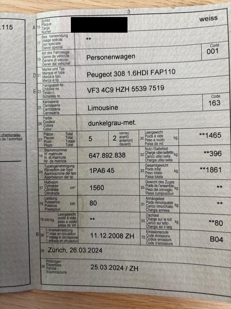 PEUGEOT 308 1.6HDI FAP110