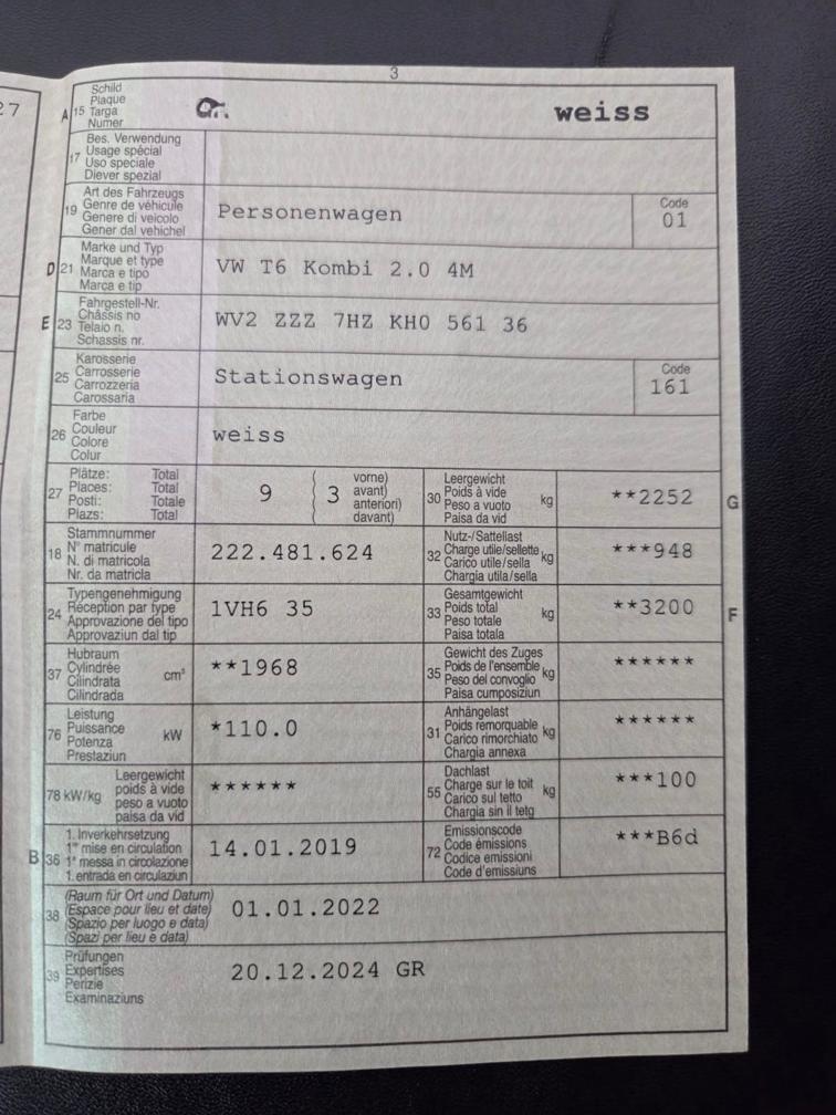 VW T6 Kombi 2.0 4M