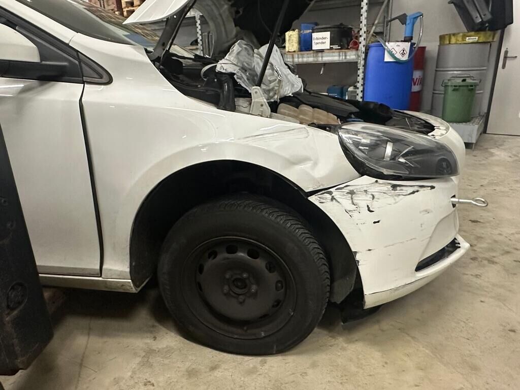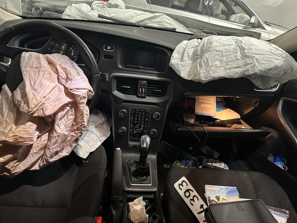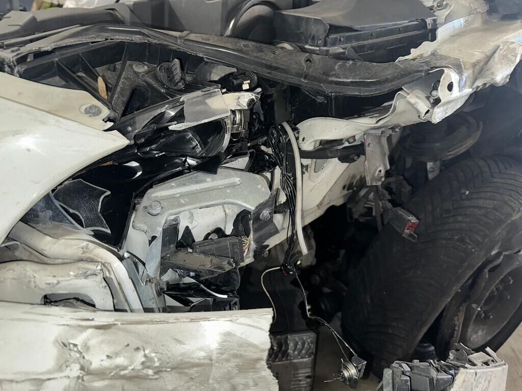 Frontkollision mit Beschädigung des Stossfängers, Motorhaube, beide Scheinwerfer, Kotflügel links, Rad, Radaufhängung, Fahrertüre, Türe hinten links, Seitenwand, Schweller links. Fahrzeugfront nach rechts verschoben. Rückhaltesysteme ausgelöst. Motor Getriebe Vorderachse Hinterachse Airbags ausgelöst: 6 unbekannt ( Abfallcode 16.01.04ak )