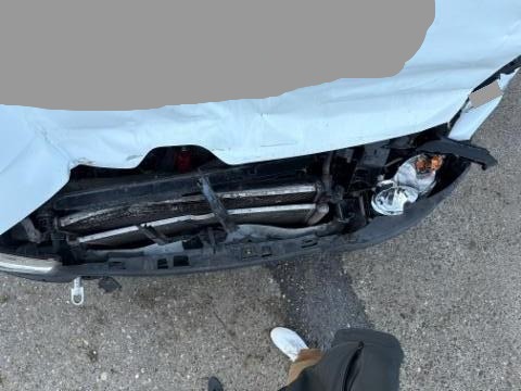 Front eingedrückt. Radhaus vorne links eingedrückt / gestaucht. Längsträger vorne rechts und links gestaucht.